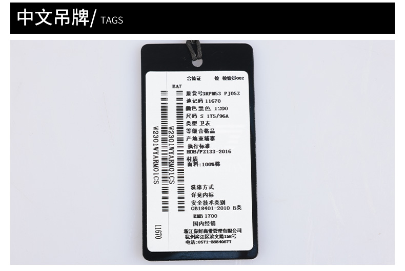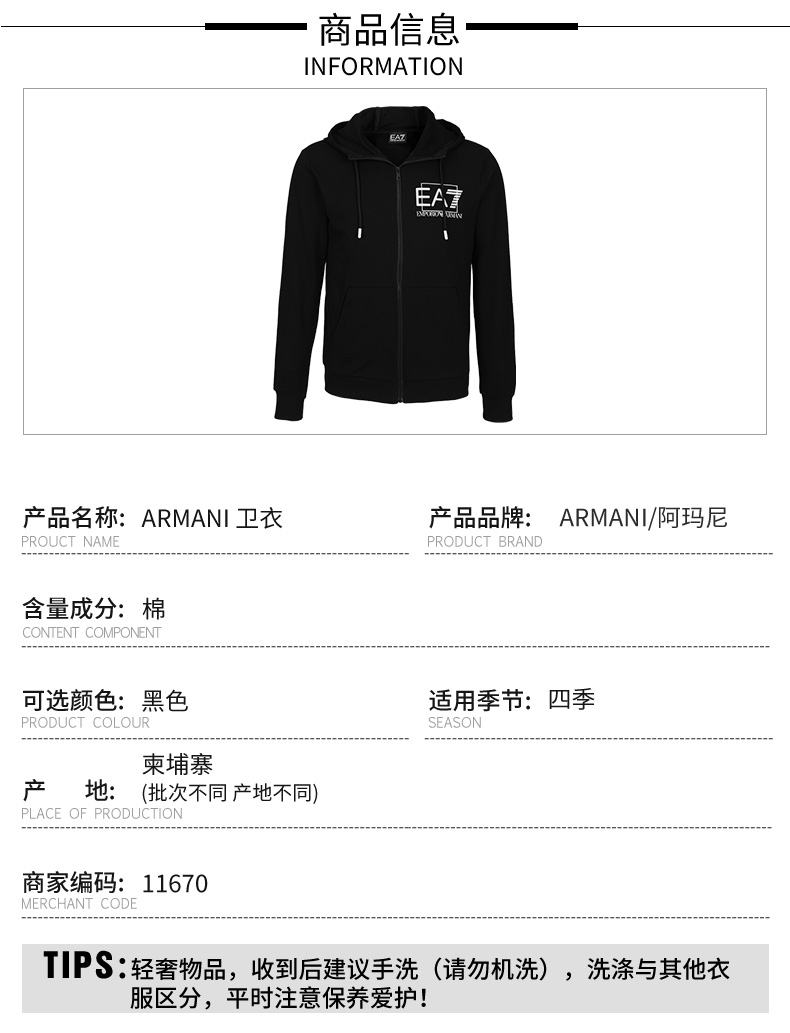 Armani 阿玛尼 男士运动休闲弹棉连帽开襟卫衣外套 11670