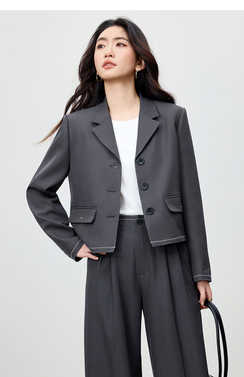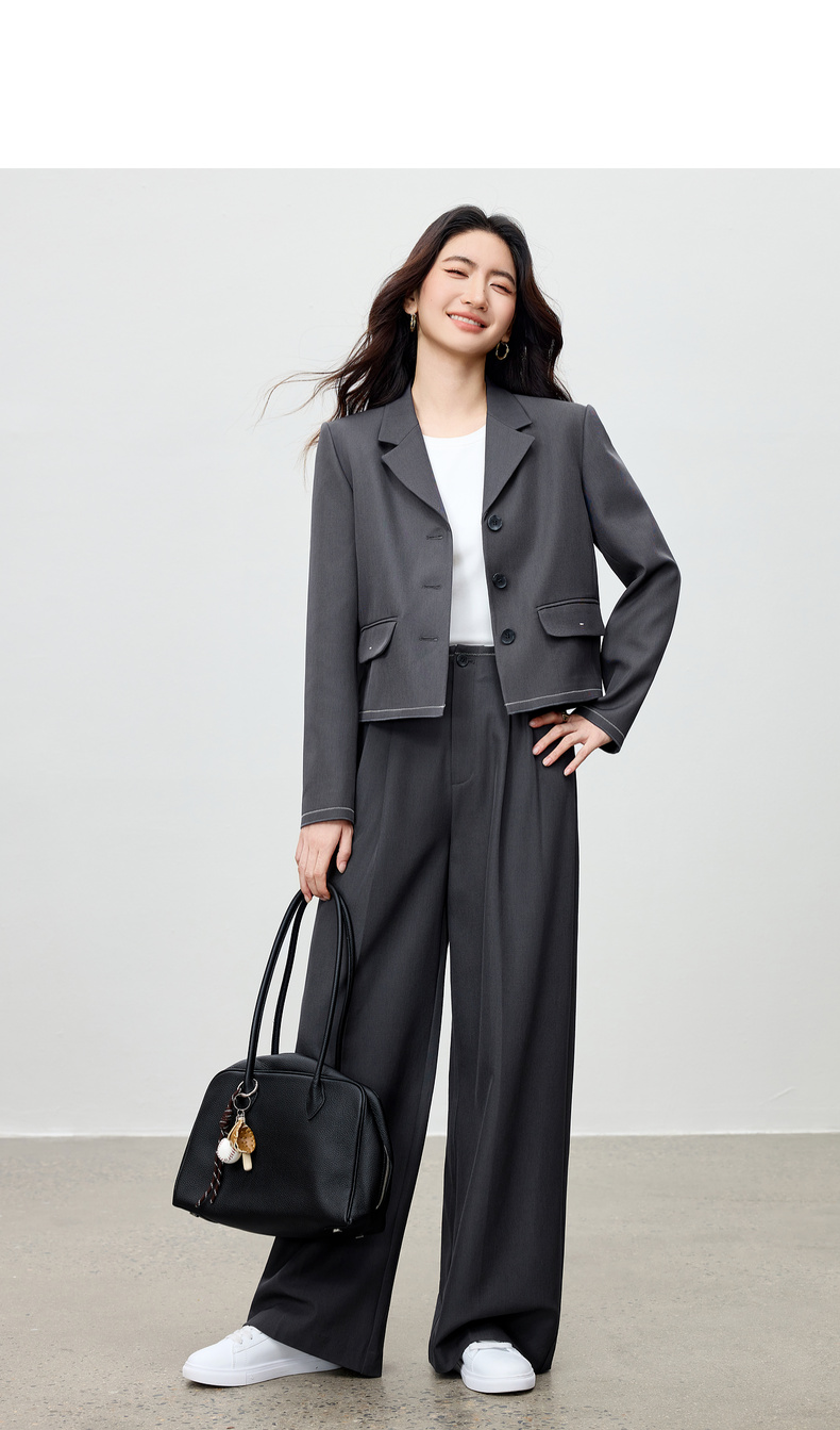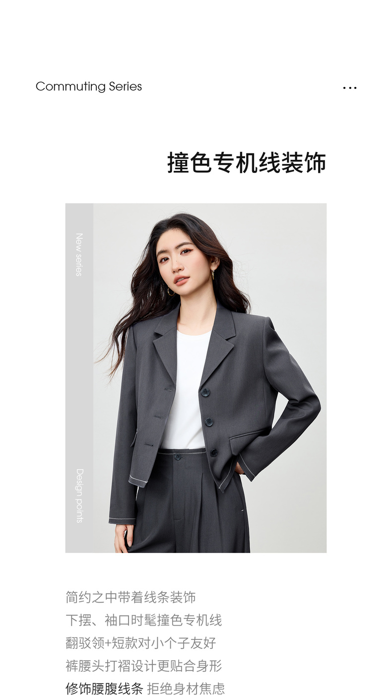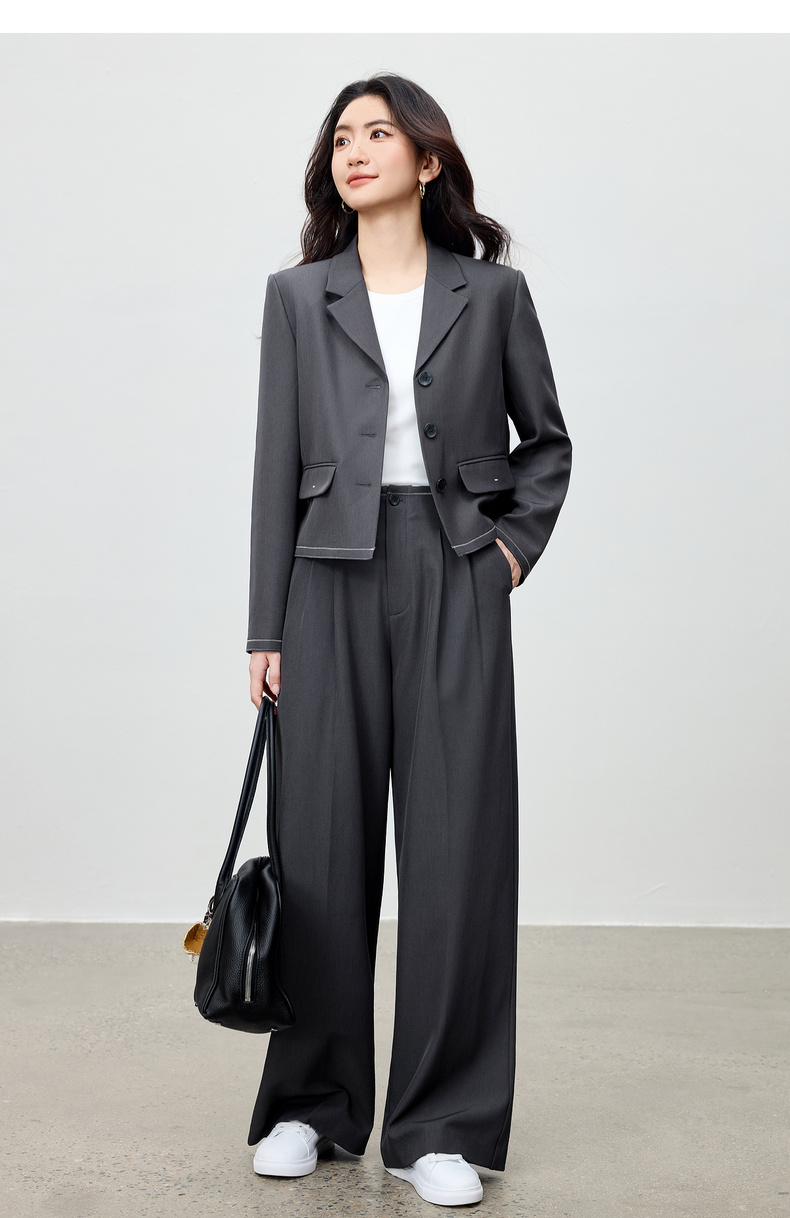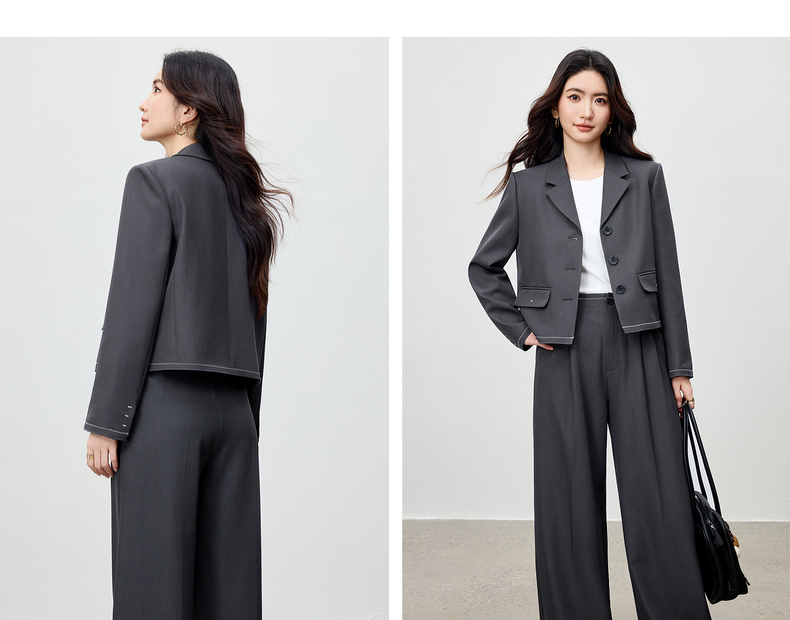 【内购】【撞色线设计】经典翻驳领西装外套撞色线设计裤腰打褶长裤两件套-153ZE2364