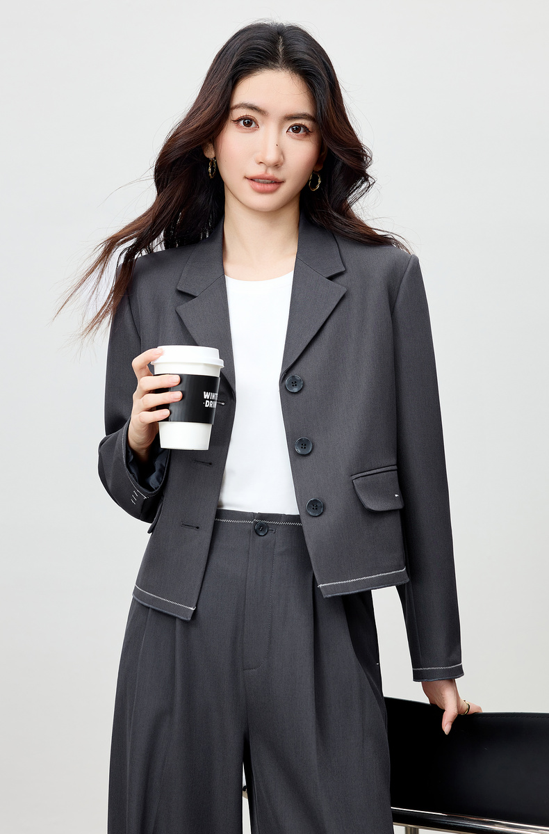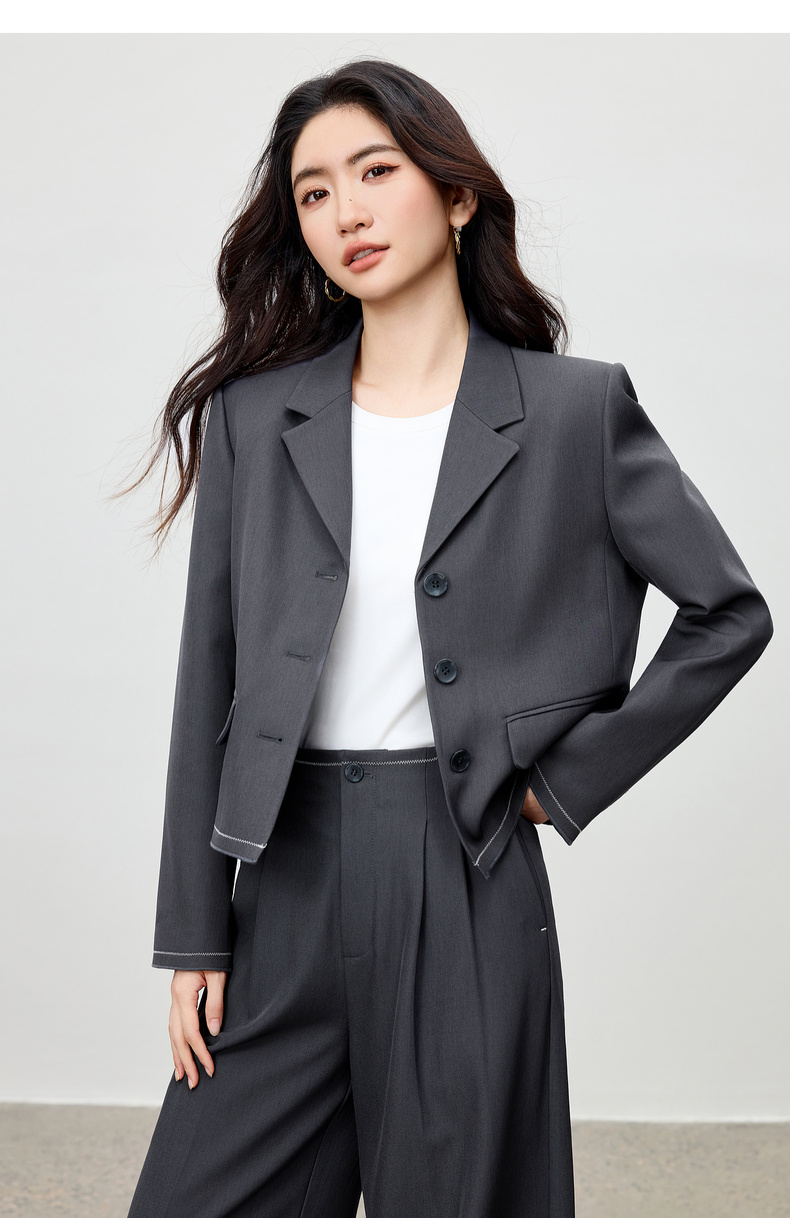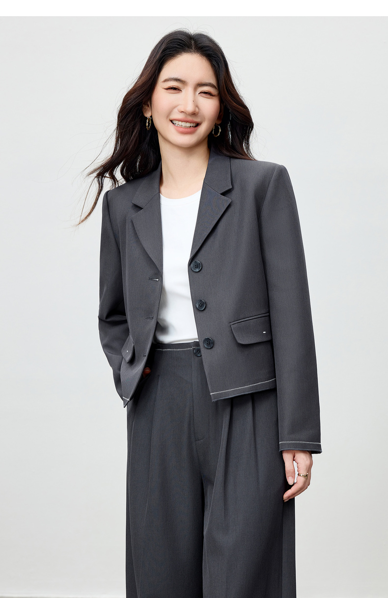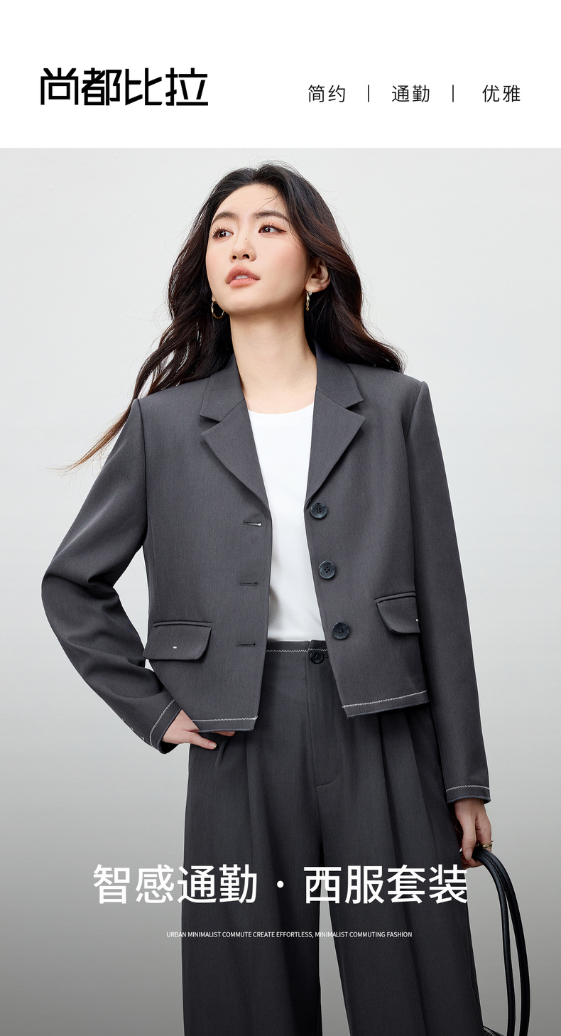 【内购】【撞色线设计】经典翻驳领西装外套撞色线设计裤腰打褶长裤两件套-153ZE2364
