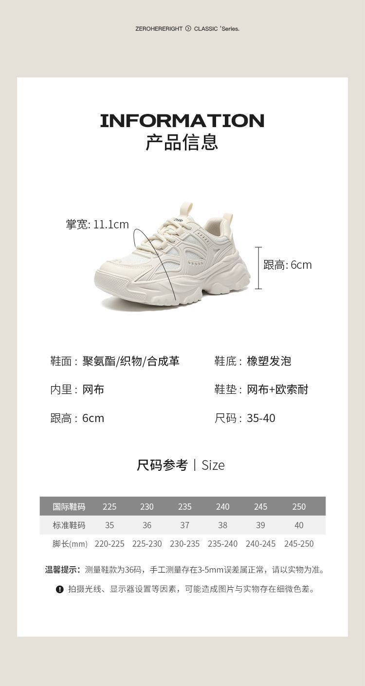 ZHR厚底老爹鞋女6cm增高春季新款透气舒适运动鞋百搭潮流休闲鞋女
