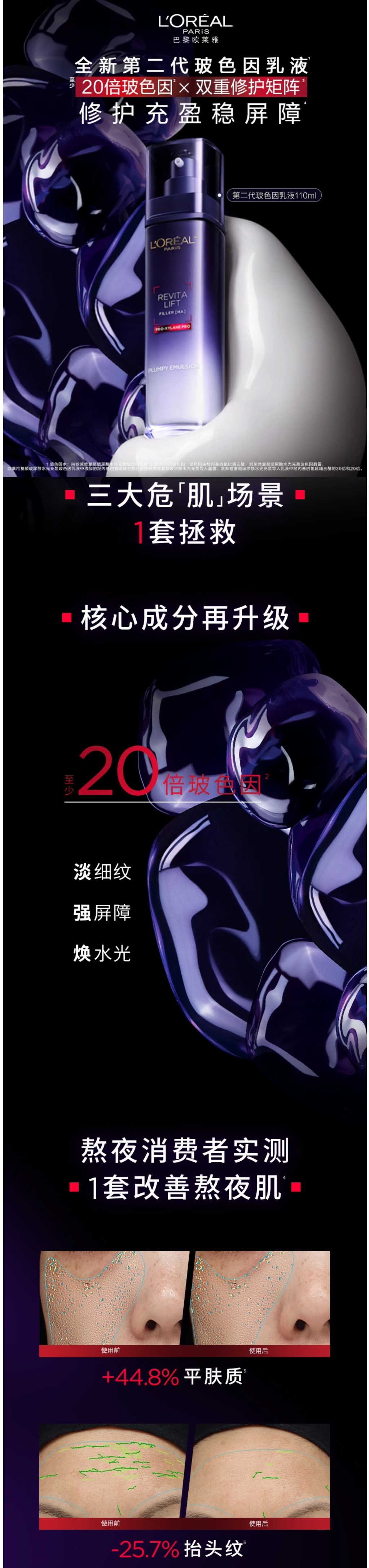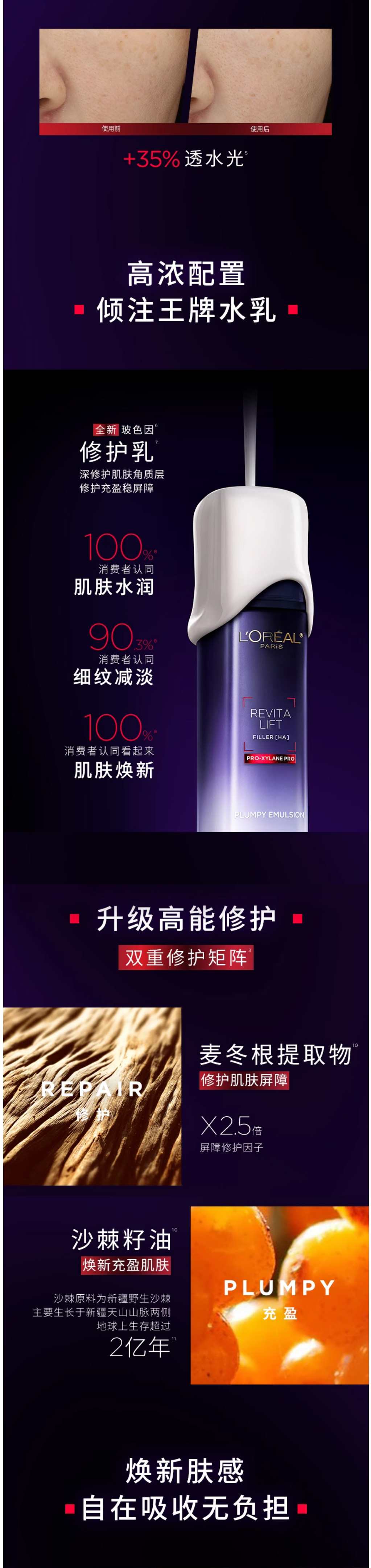 欧莱雅L’OREAL 复颜玻尿酸水光充盈玻色因乳液110ml