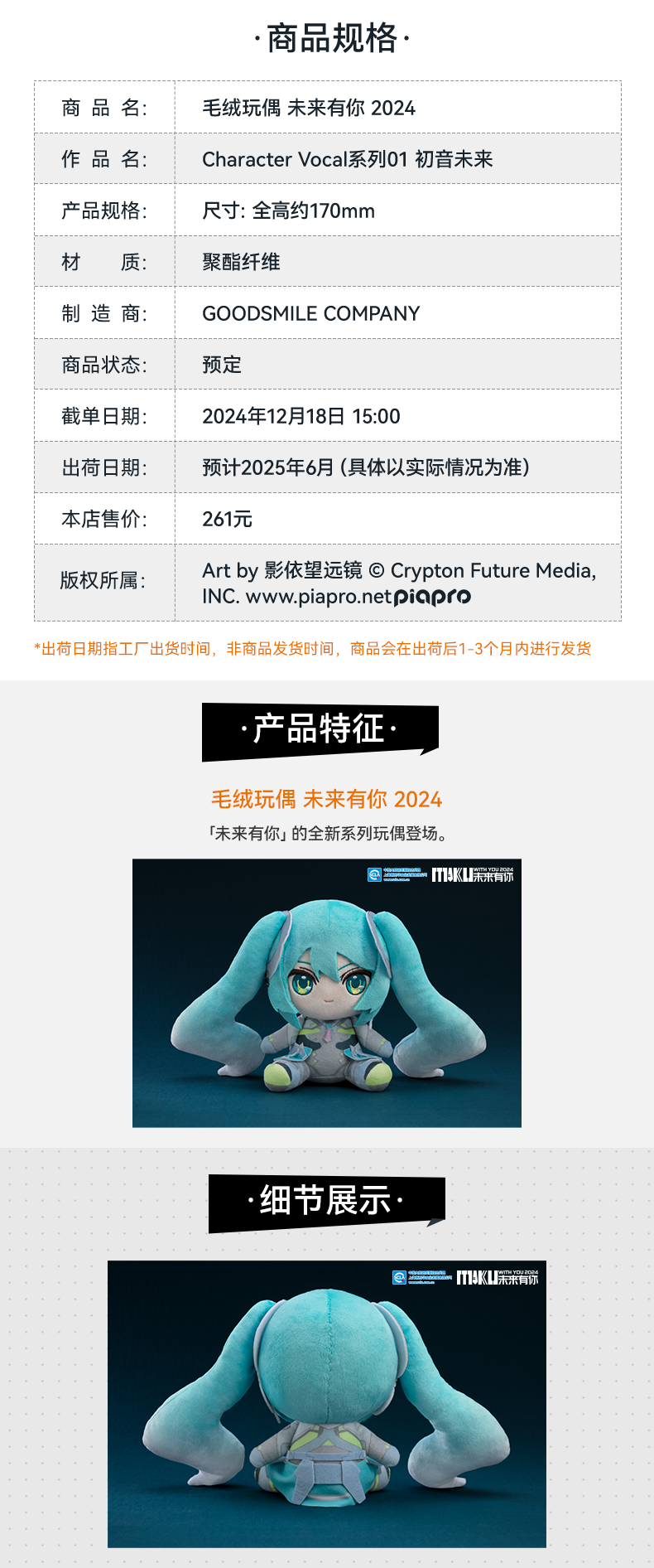 【GSC现货】毛绒玩偶 未来有你 2024 Character Vocal系列01 初音未来