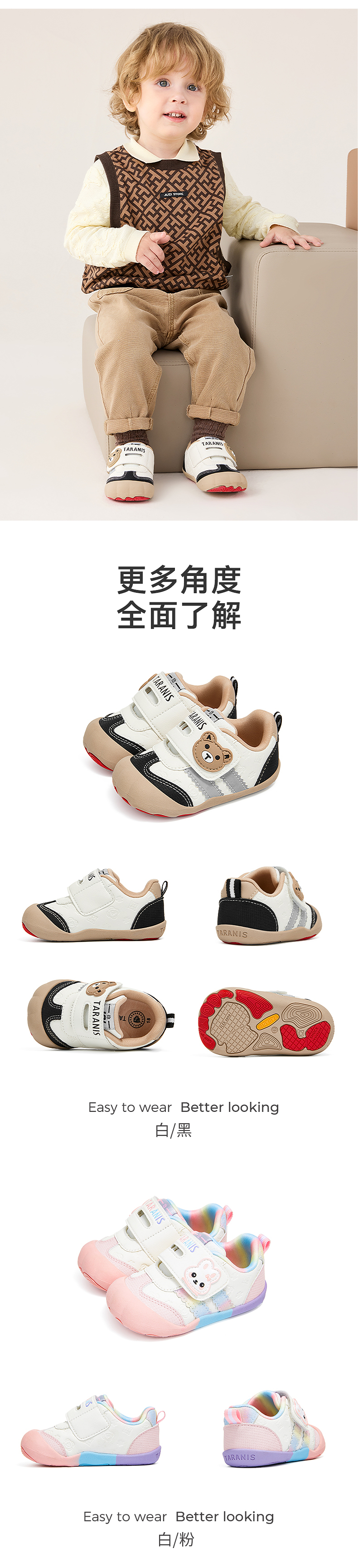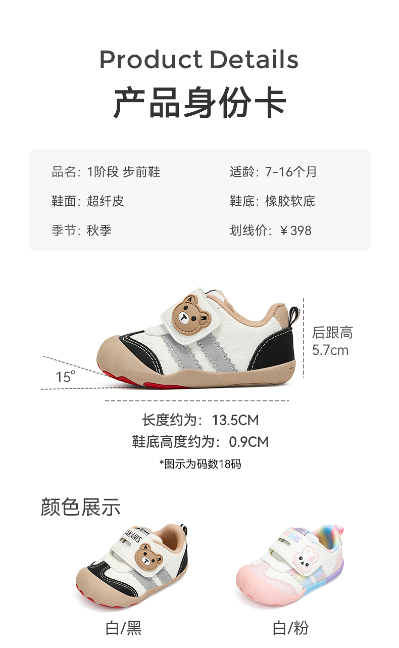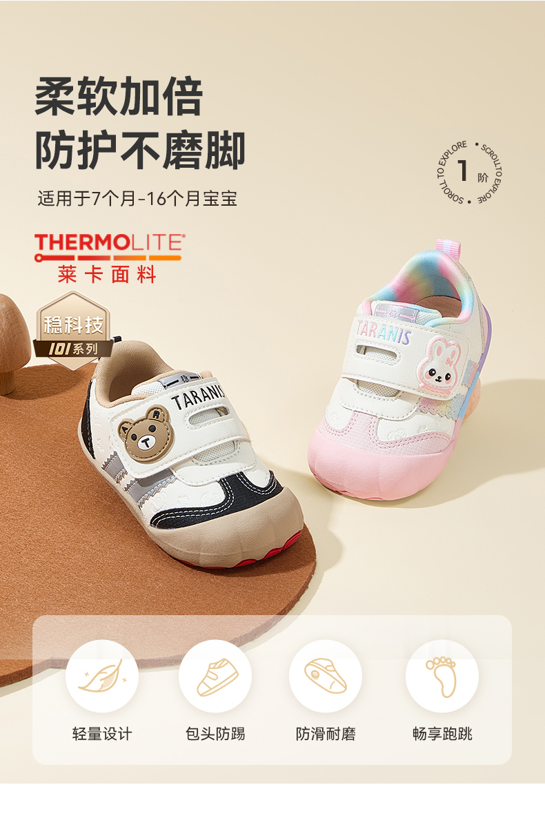 泰兰尼斯101秋季新款婴儿步前鞋男宝宝防滑软底女宝宝婴幼儿童鞋 T24B4C5270
