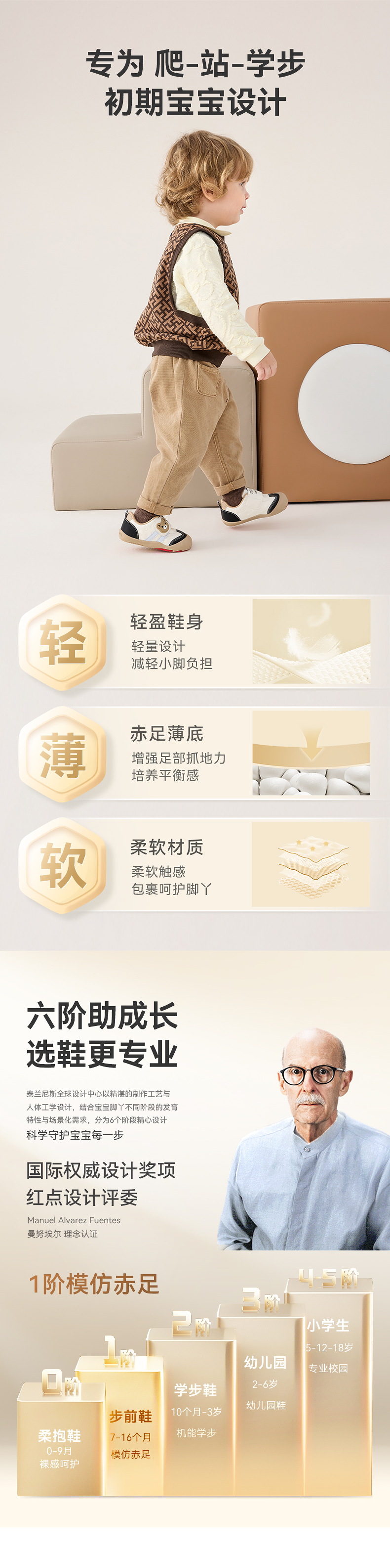 泰兰尼斯童鞋秋季新款机能鞋女宝宝步前鞋婴幼儿男童宝宝鞋赤足鞋 T24B5C6494
