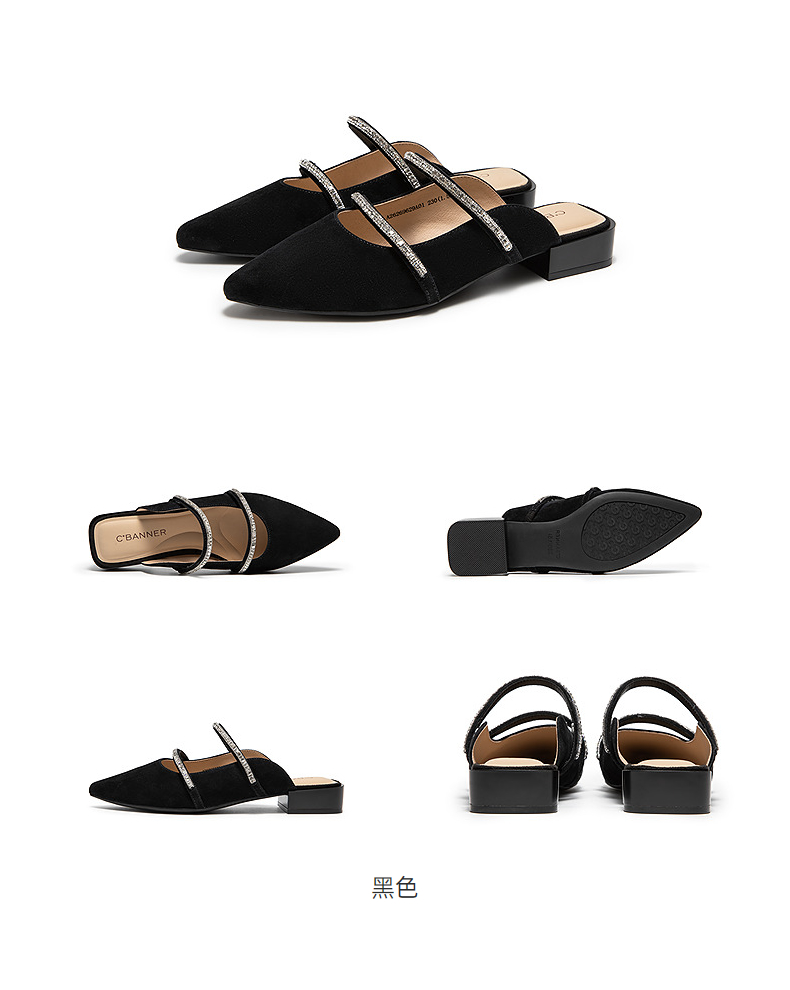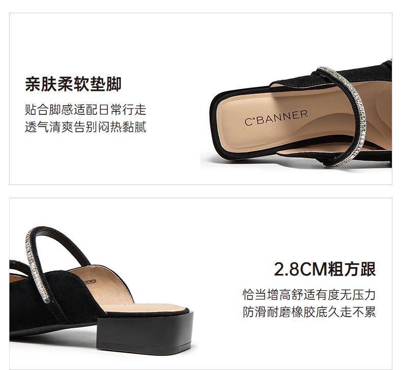 千百度双带玛丽珍包头拖女2026夏季新款低跟外穿休闲不累脚凉拖鞋A26269629