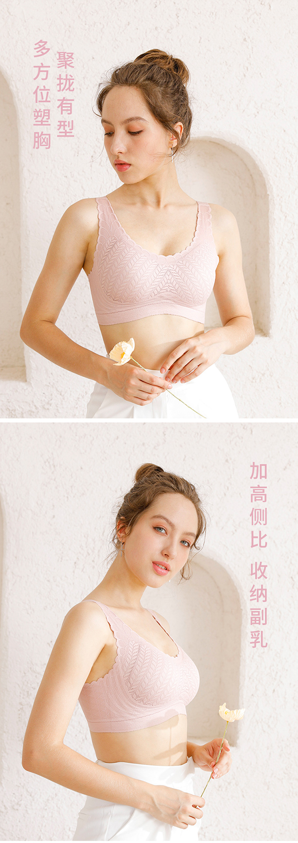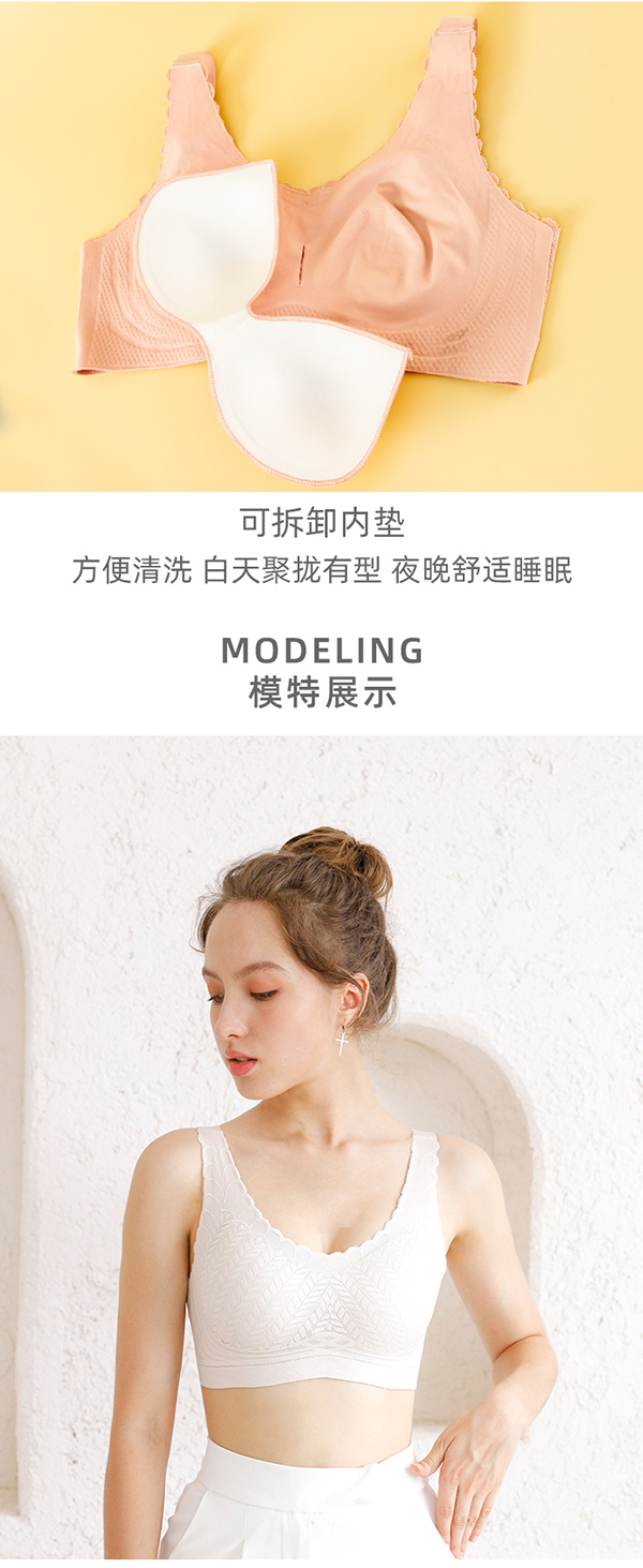 (299元/2件)麦穗织花蚕丝蛋白背扣文胸53062