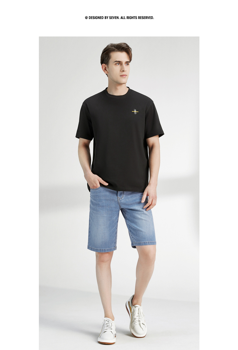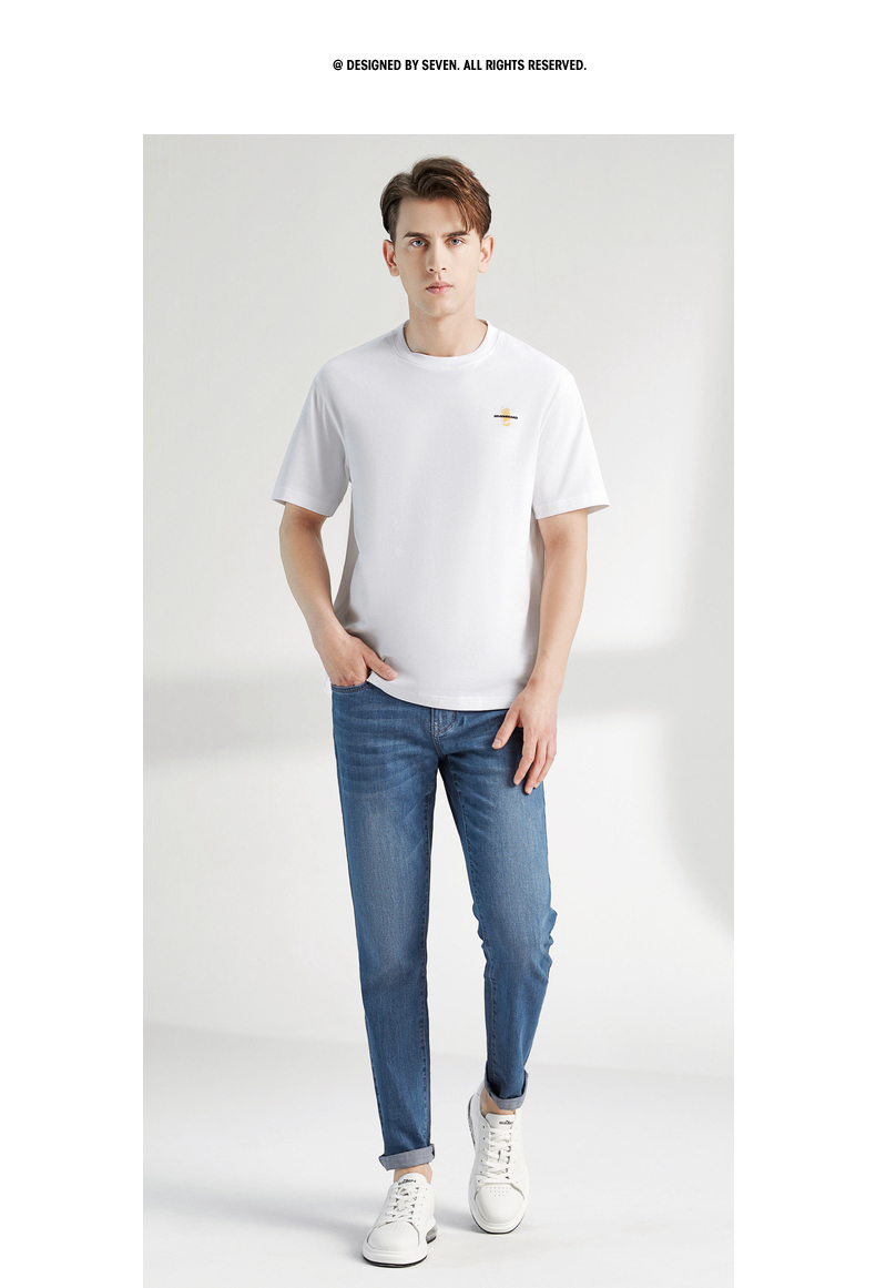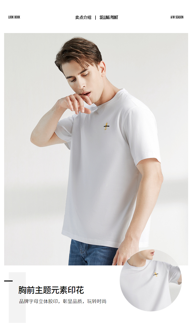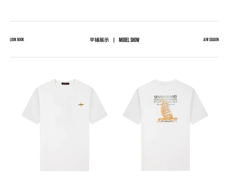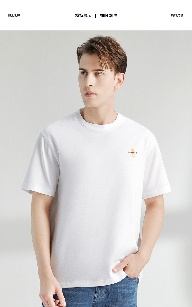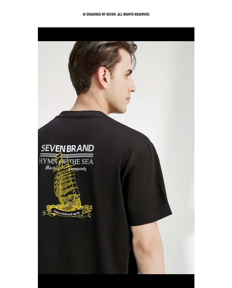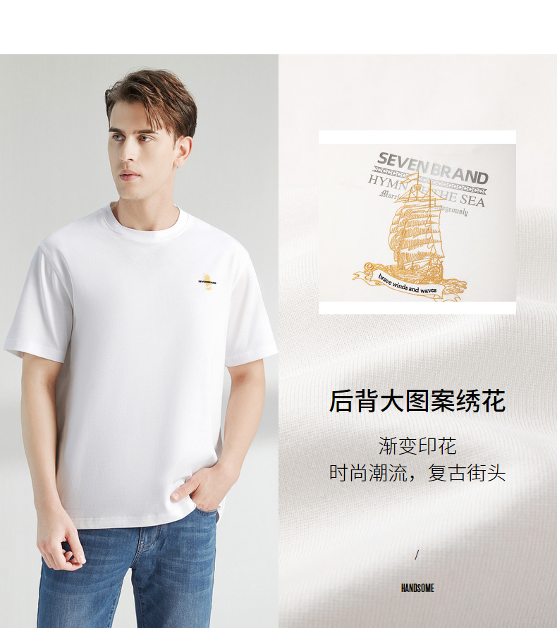 柒牌短袖t恤男夏季新款纯棉圆领帆船印花男士宽松体恤上衣潮 122T71240