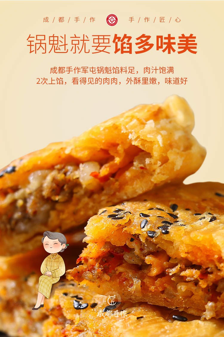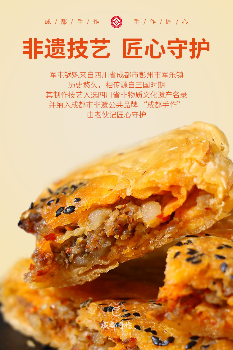 #年终促#【军屯锅魁6个特惠装】成都手作非遗美食锅盔 成都名小吃 五香猪肉味/麻辣牛肉味 两味可选【成都名小吃】【四川特产】【非遗技艺】【匠心手作】