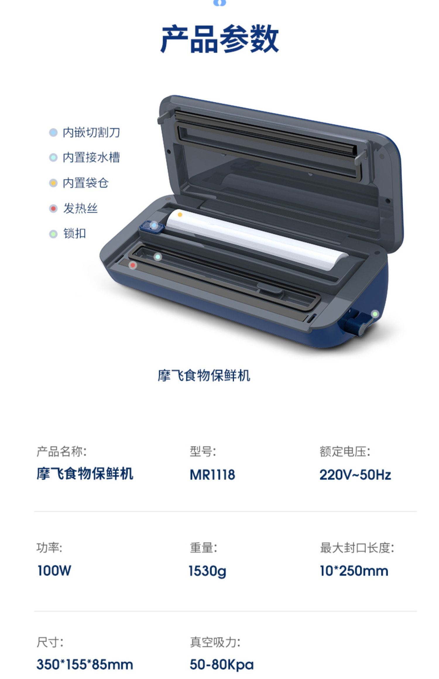 【摩飞 食物保鲜机】真空封口锁鲜 干湿可抽 食品保鲜密封机