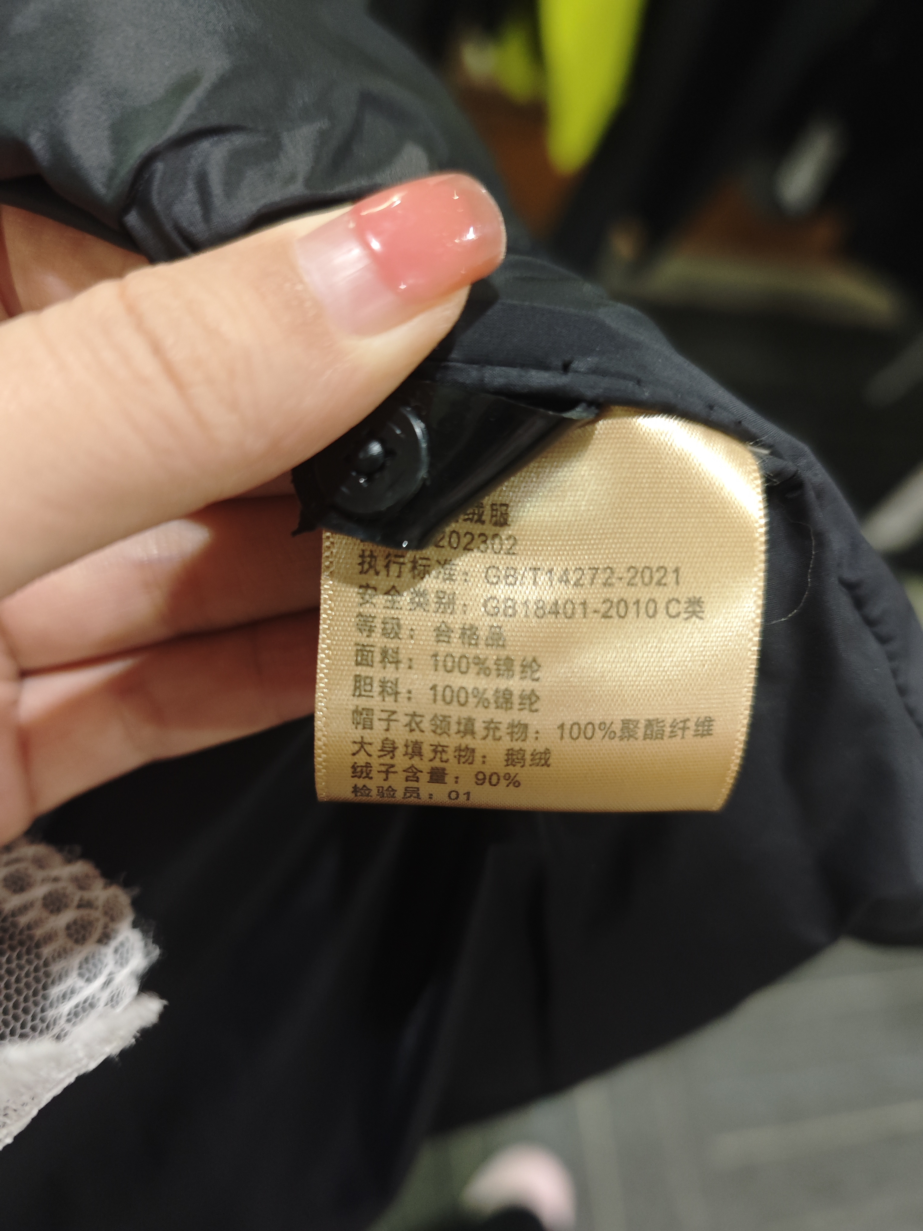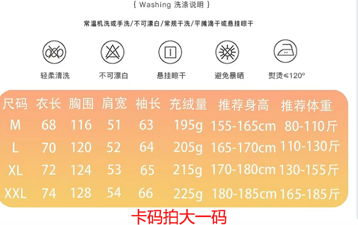 充绒量:M码195g,L码205g,XL码215g,2XL码225g