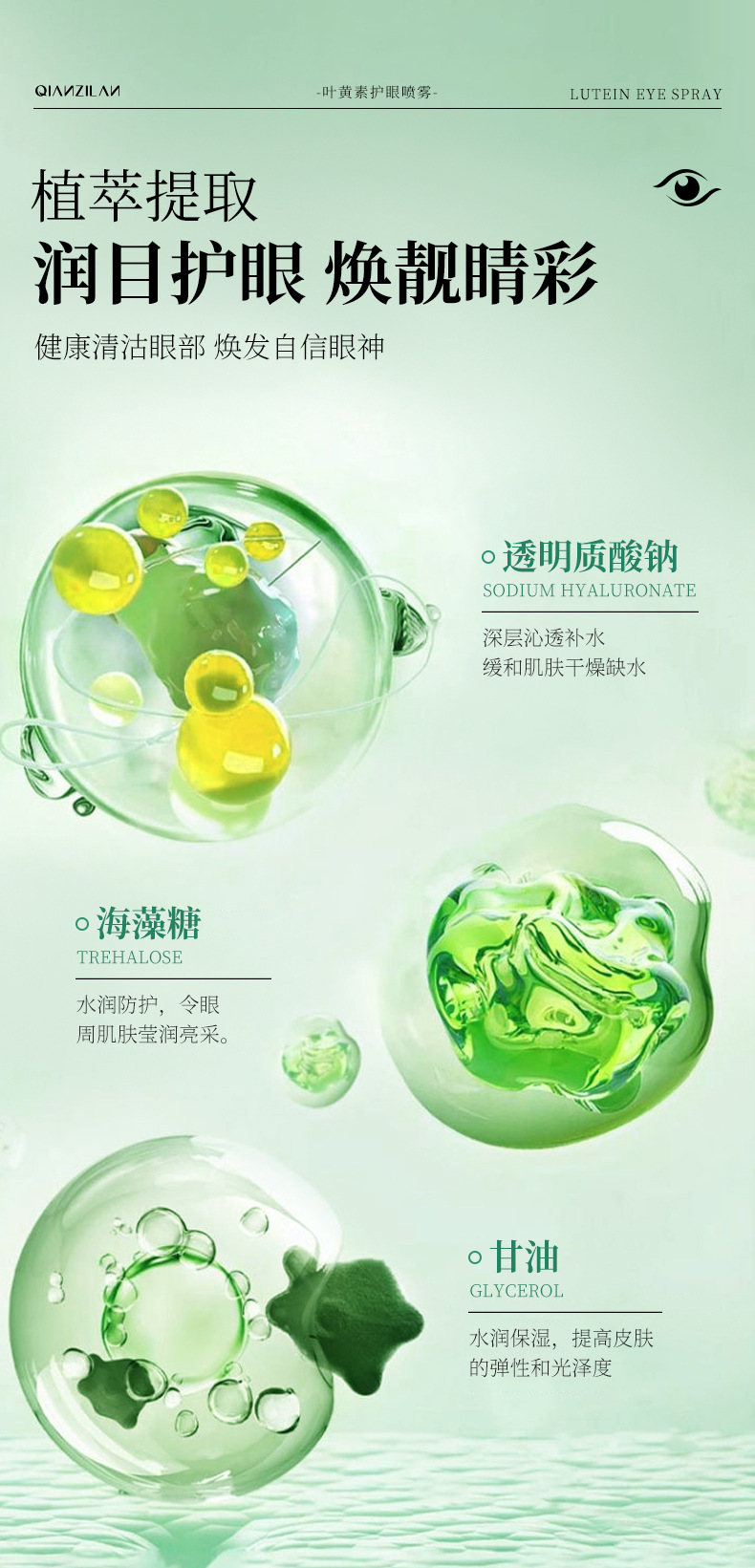 【舒润双眸,买2送1】叶黄素护眼喷雾 放松滋润双眼 舒适明亮眼舒缓干 涩清洗保湿冰爽泪液眼喷雾