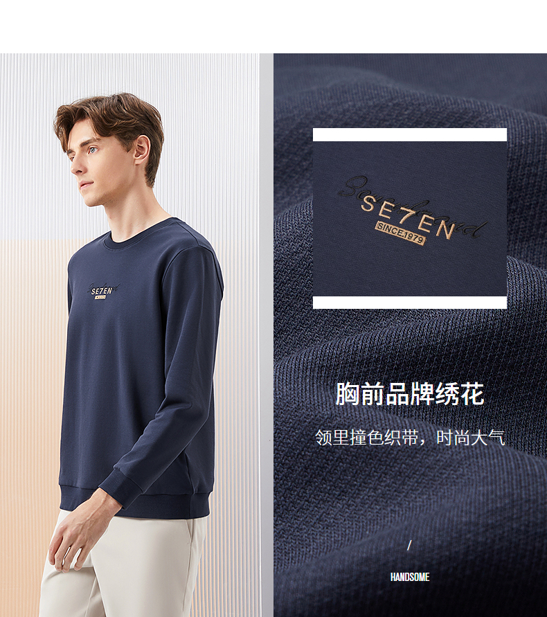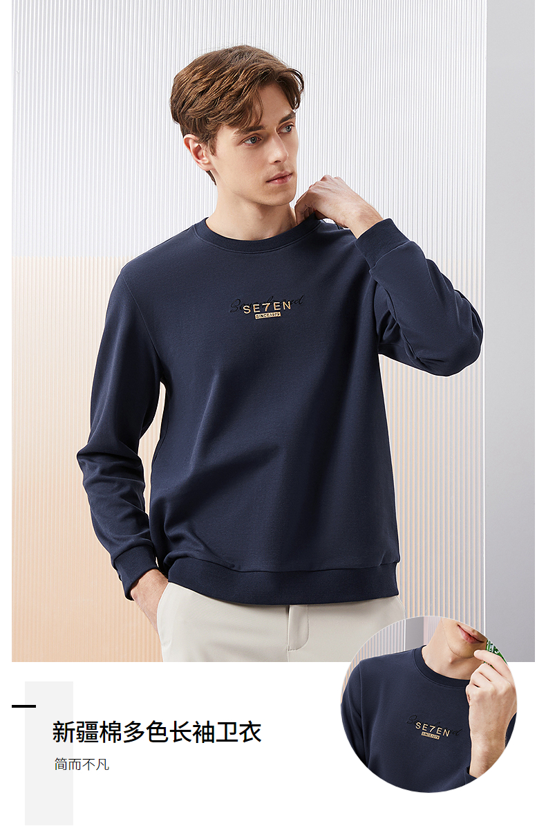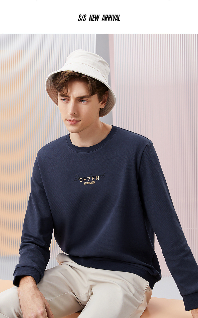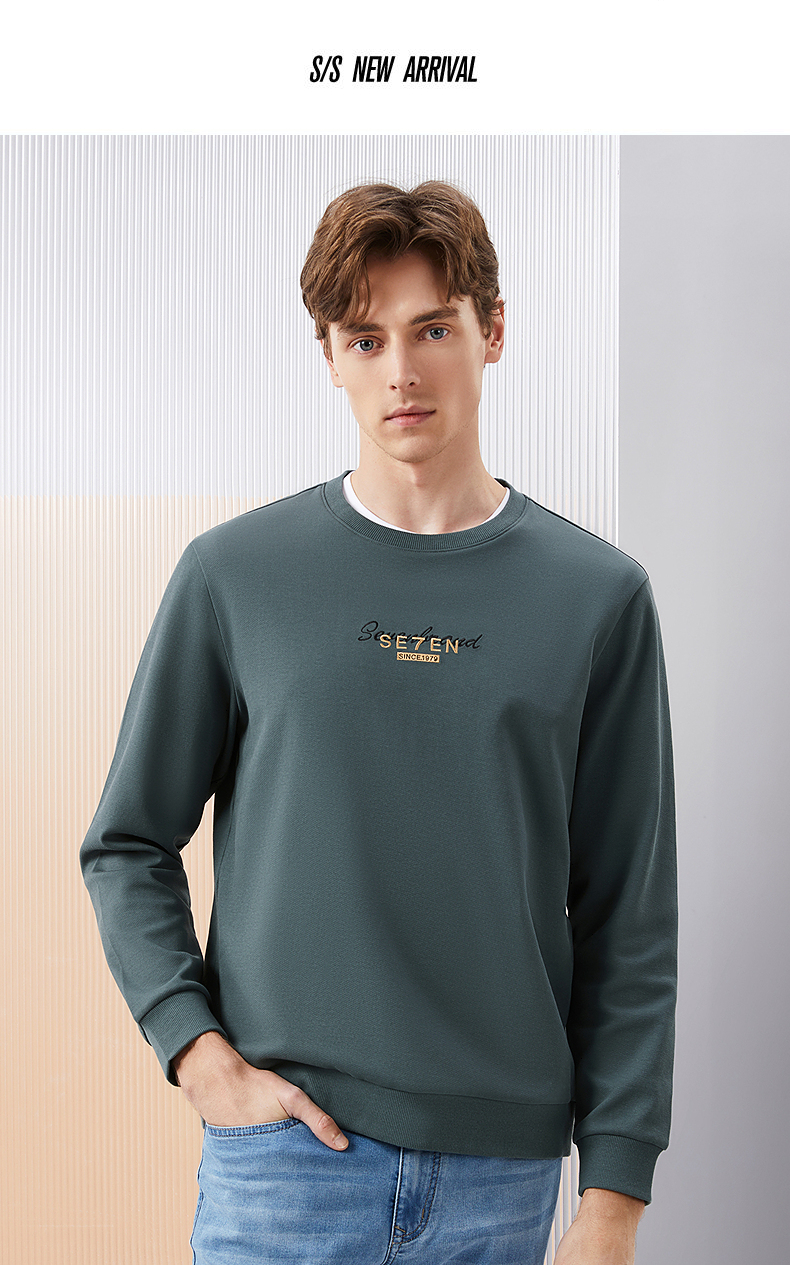 【5A抗菌】柒牌男装卫衣男2024春季新款时尚休闲圆领长袖套头上衣 126W70150