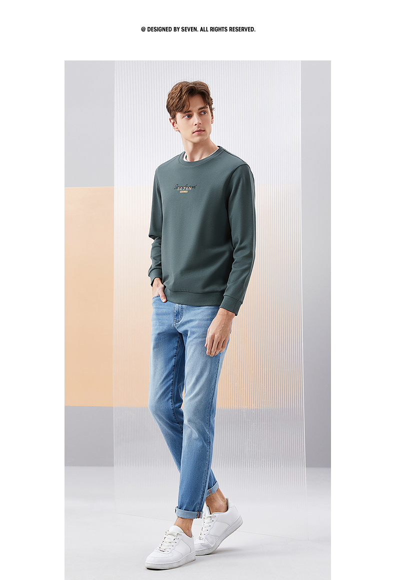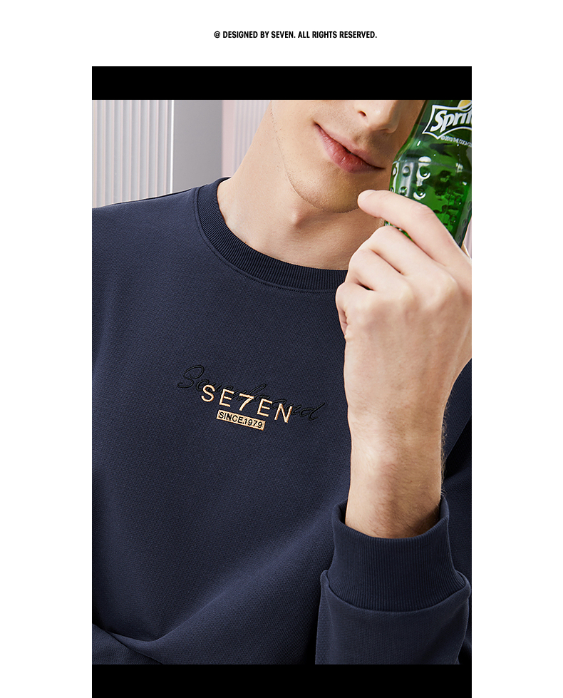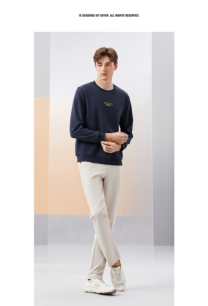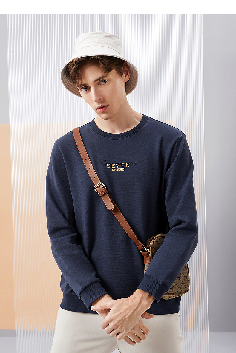 【5A抗菌】柒牌男装卫衣男2024春季新款时尚休闲圆领长袖套头上衣 126W70150