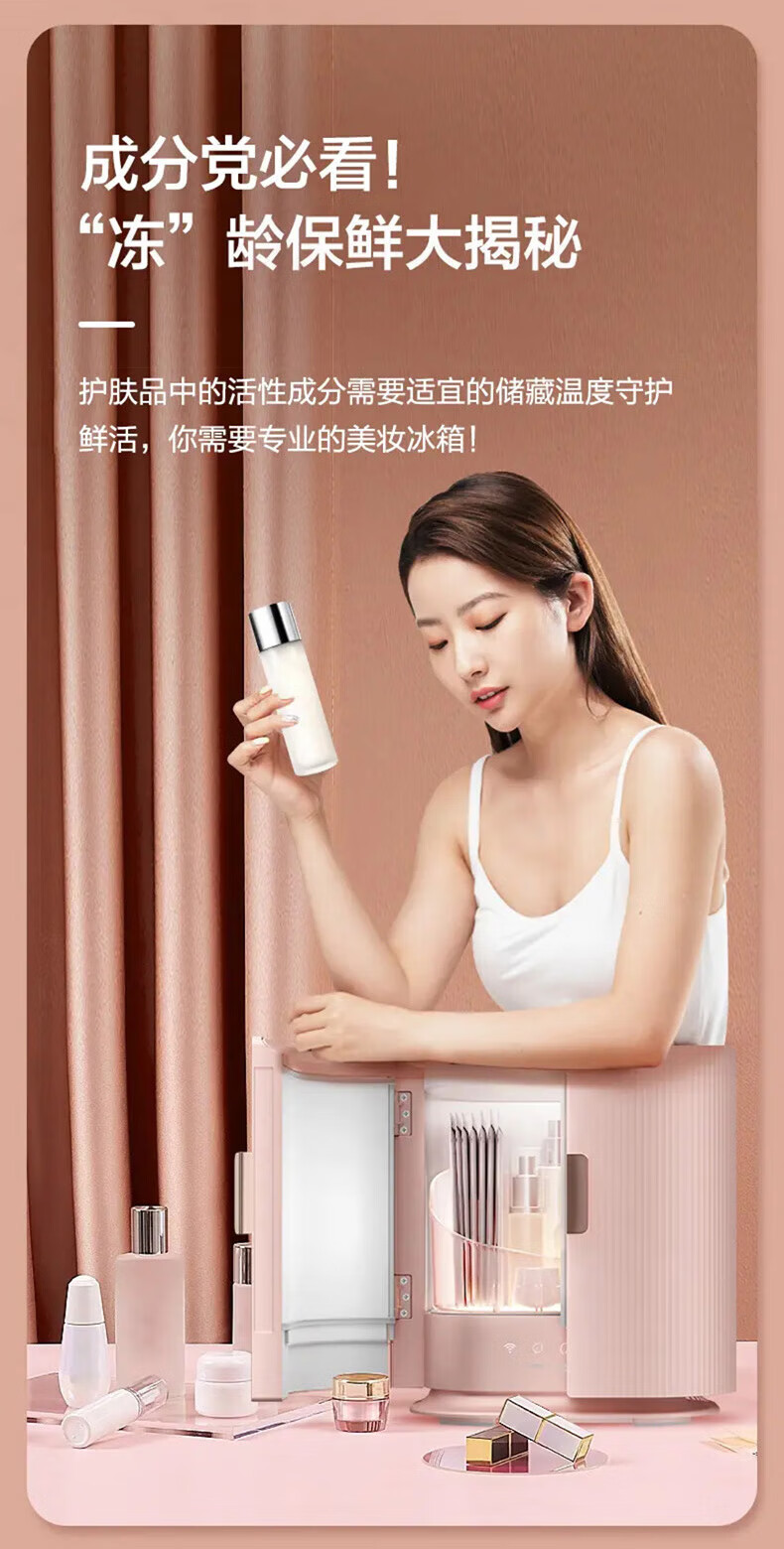 Leader美妆冰箱 9升小仙贝iCase智能WIFI超薄三档变温小型迷你神器冰家用 宿舍 化妆护肤品保鲜 底部制冷 珊瑚粉MZ-9WLLSDZ0PPU1