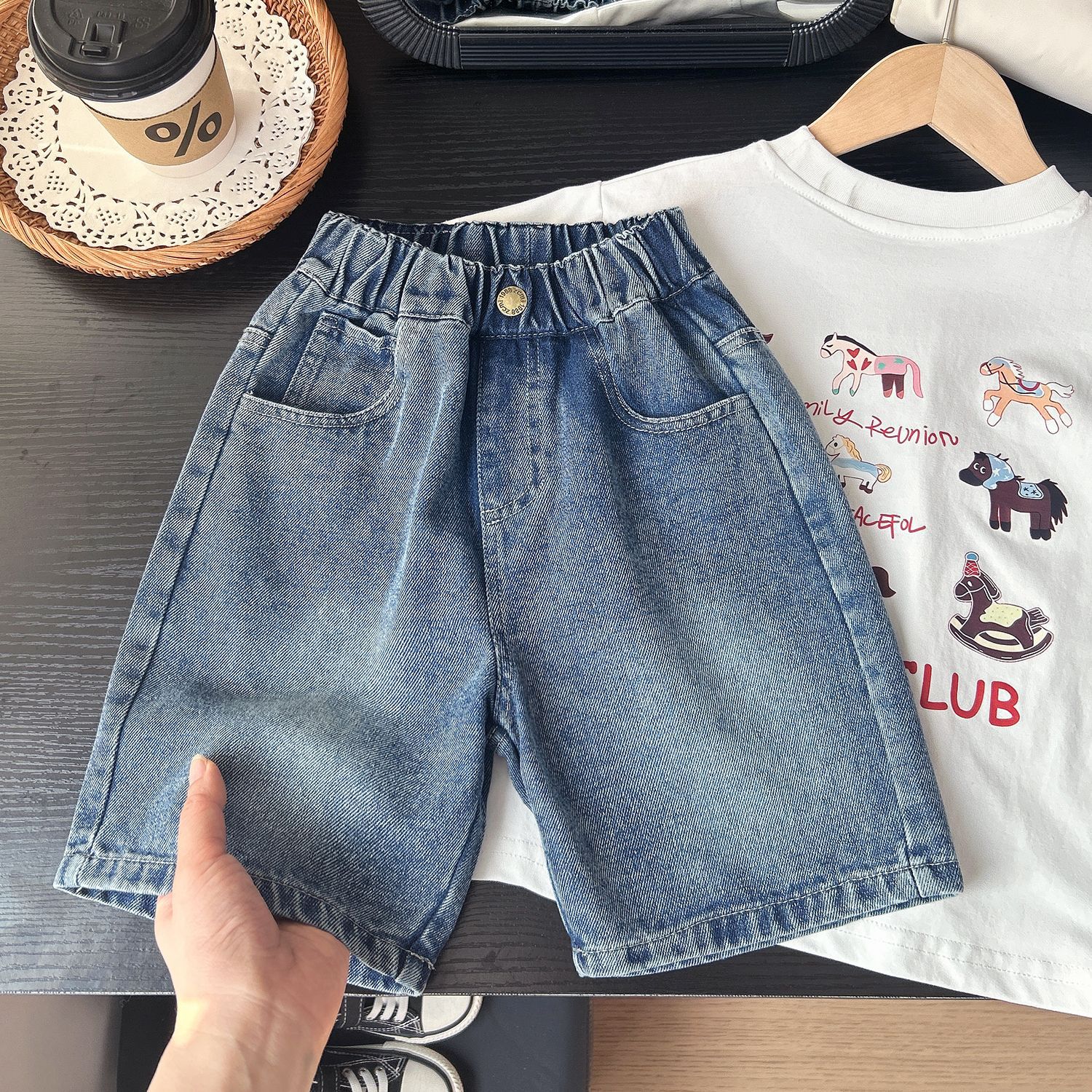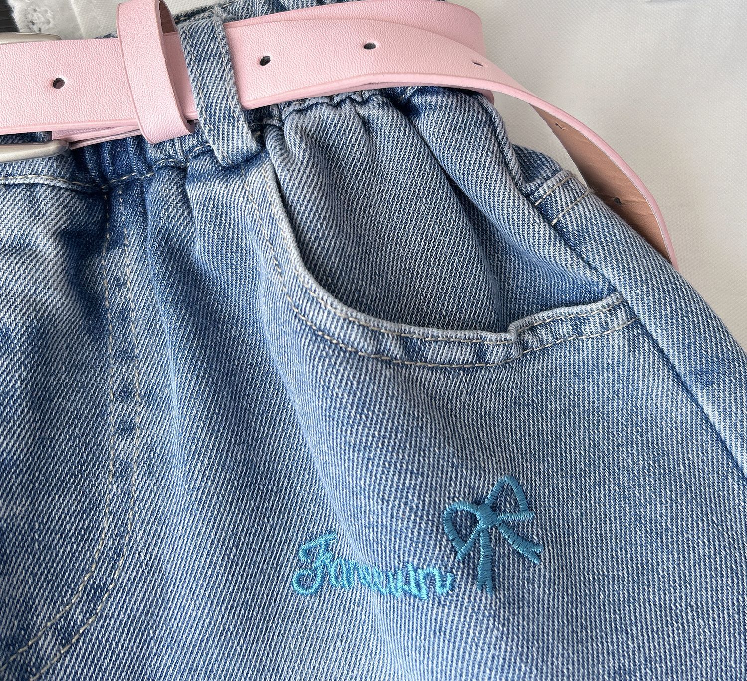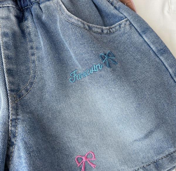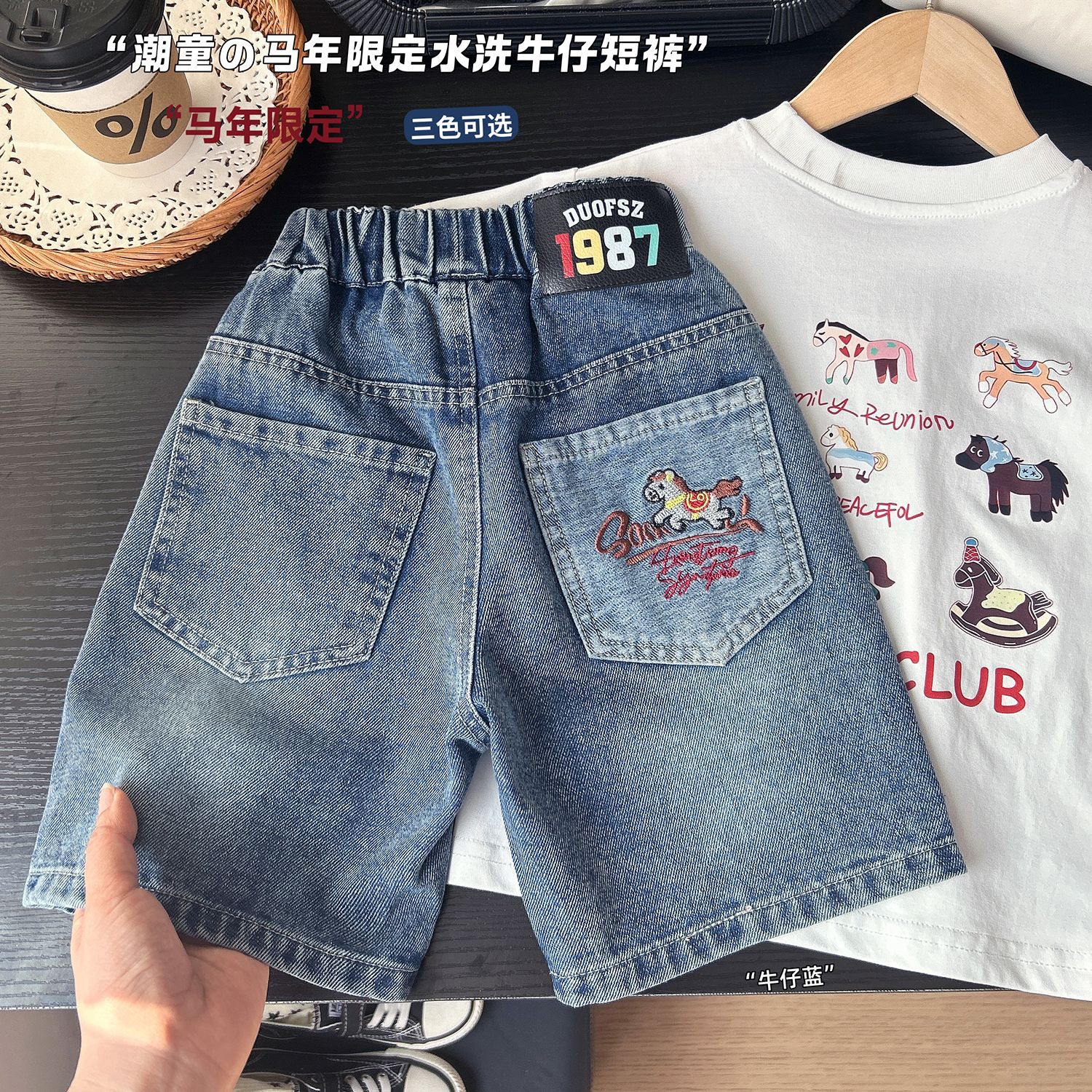2026新款夏款棉质牛仔布童装 可爱卡通绣花牛仔短裤