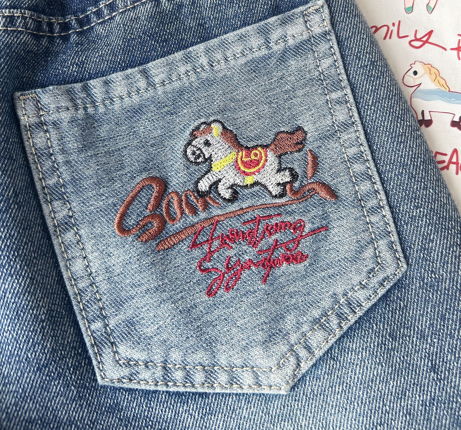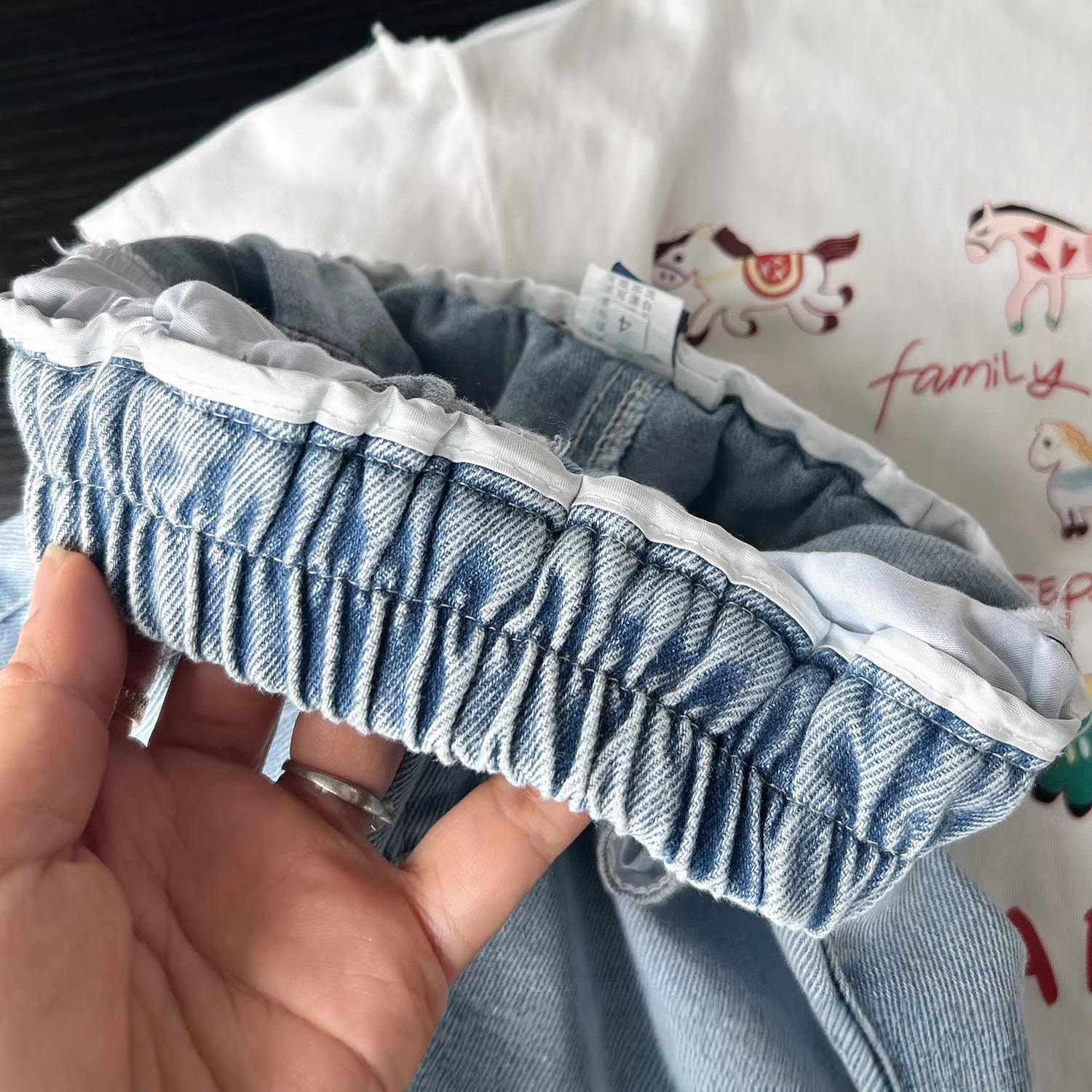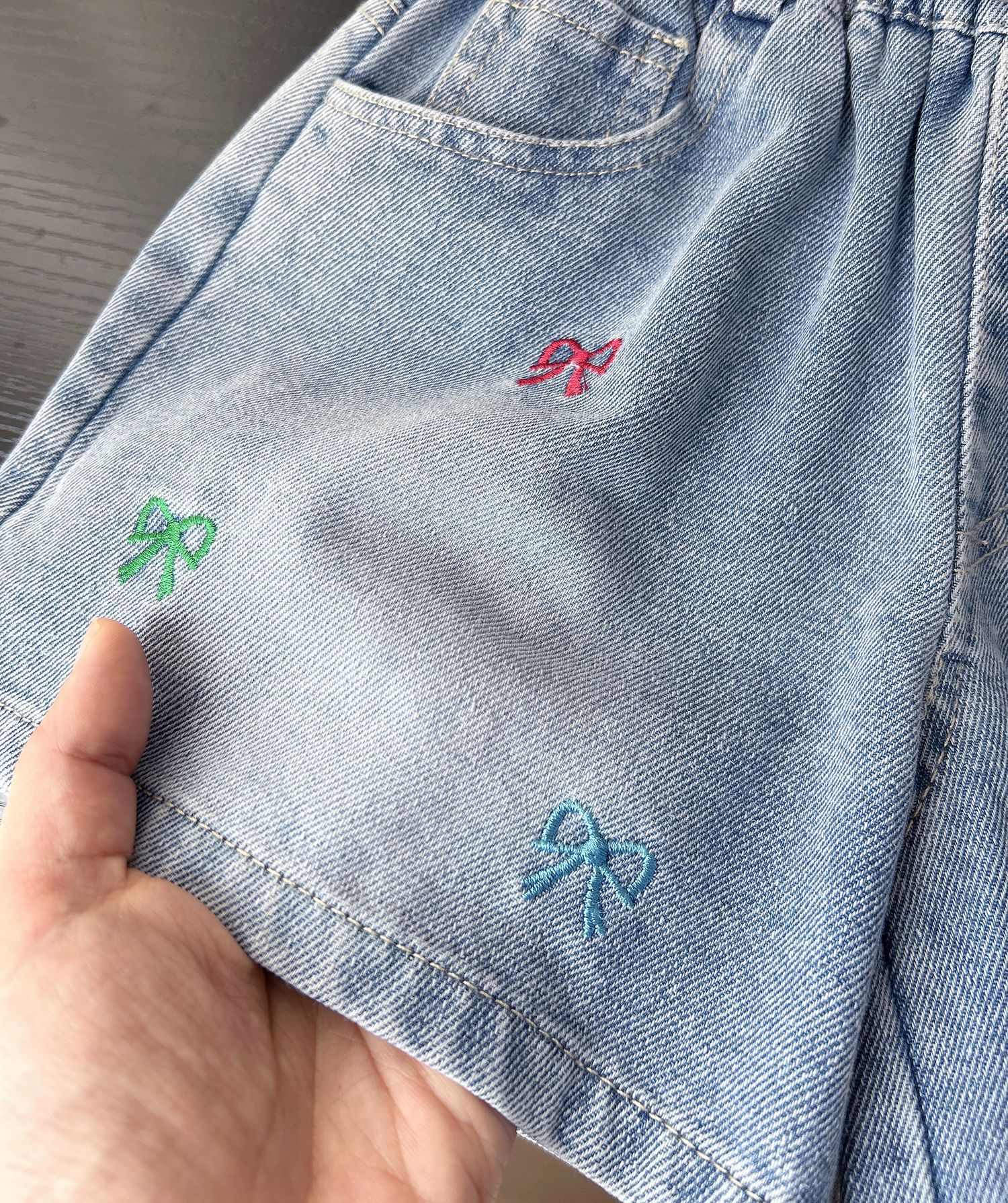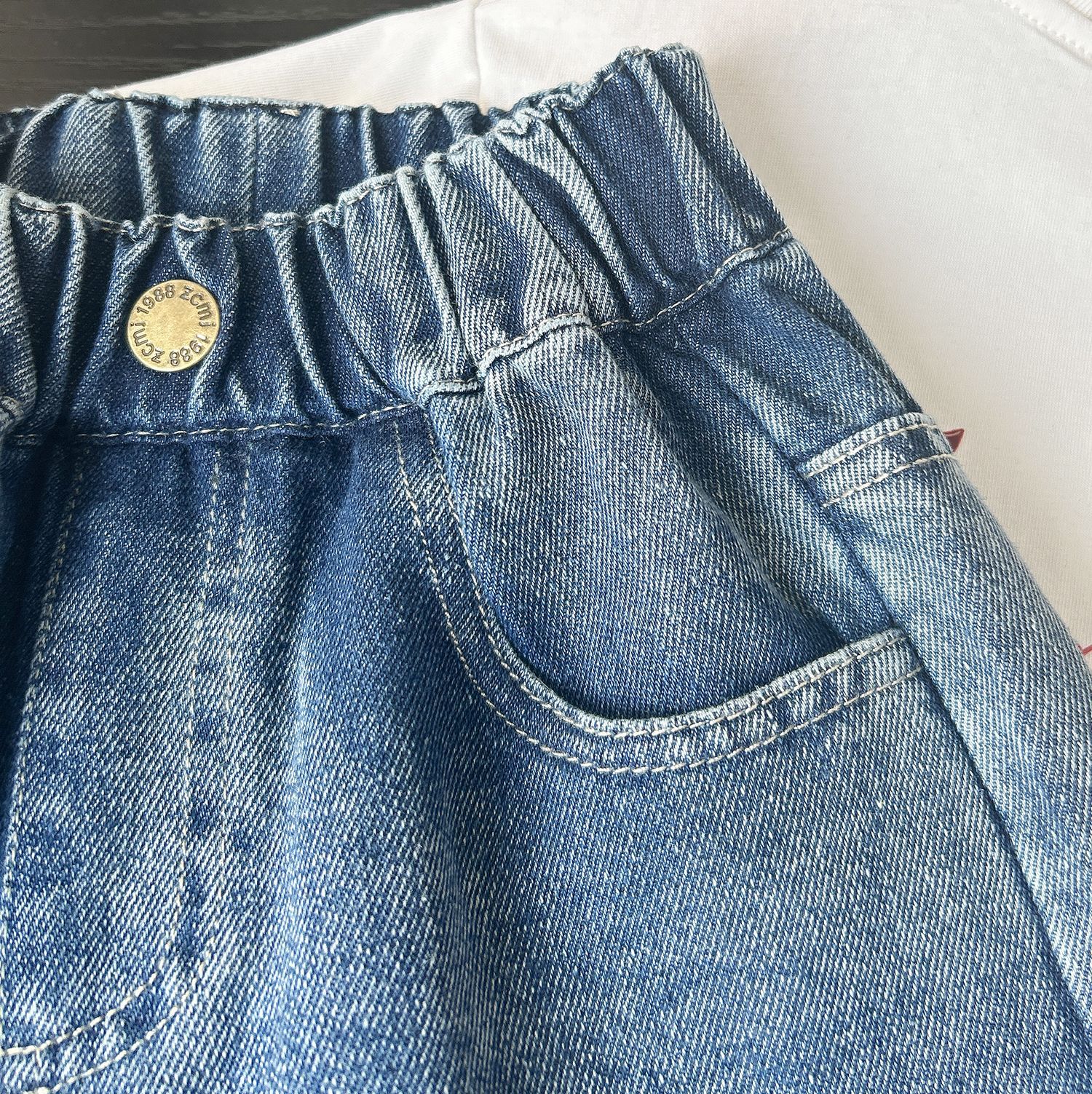 2026新款夏款棉质牛仔布童装 可爱卡通绣花牛仔短裤