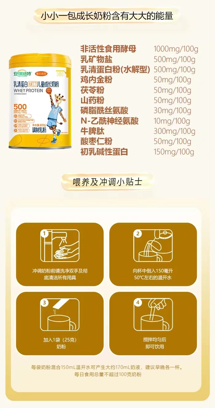 安琪纽特 臻乐高高 乳清蛋白水解工艺儿童成长奶粉(购满358元参与:1元报名送358元乳铁蛋白)