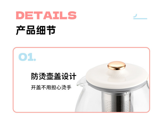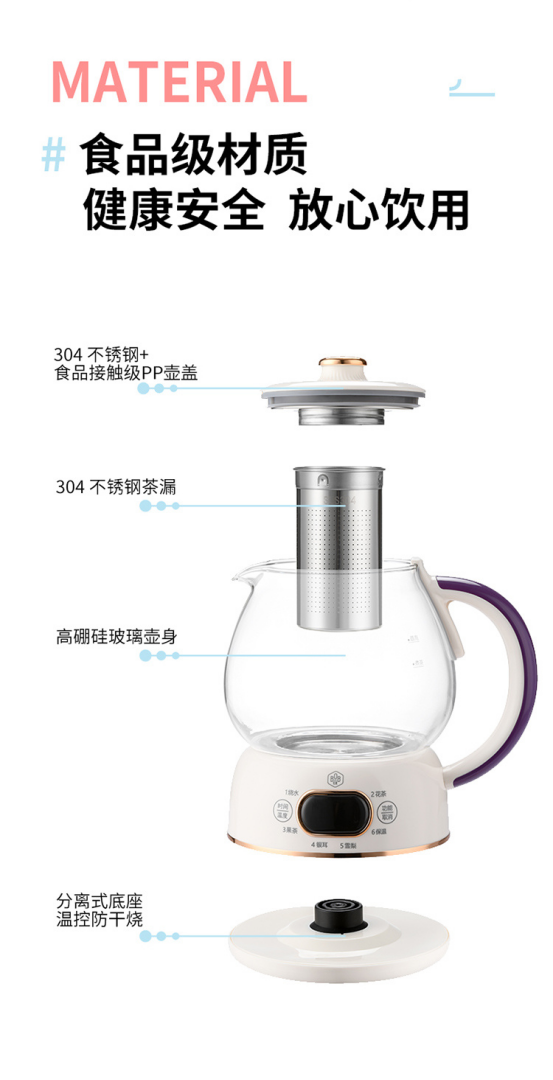 【材质】:PP上盖+304不锈钢滤网+高硼硅玻璃玻璃壶身