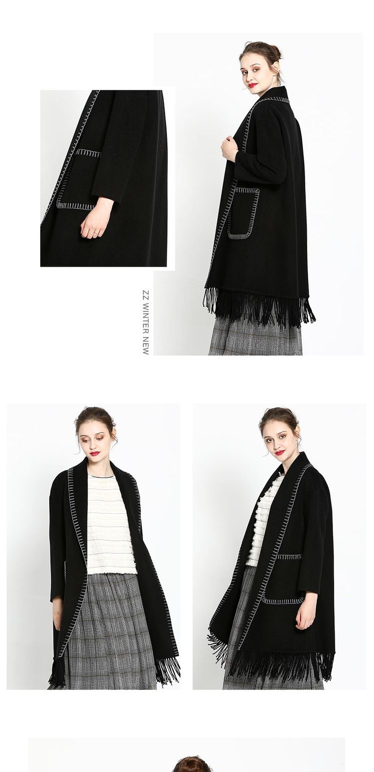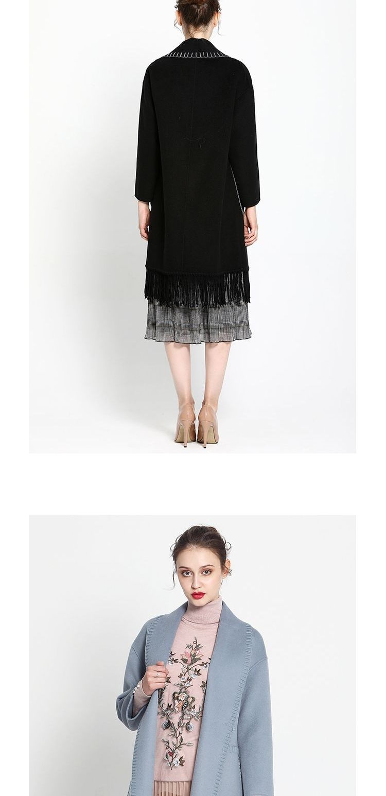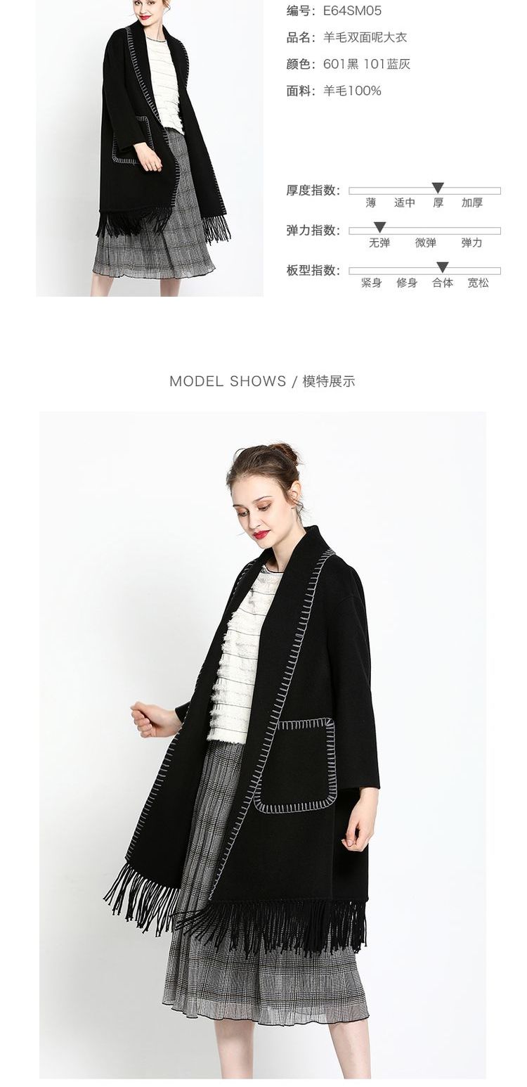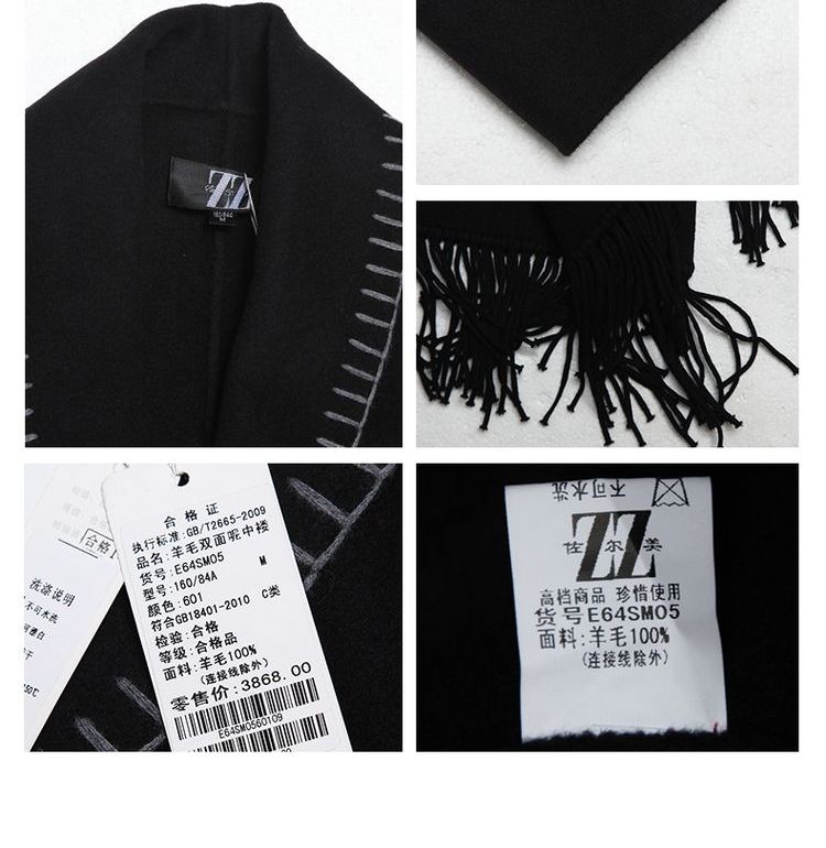 佐尔美ZZ 新品新款纯色羊毛双面呢女士中长款大衣E64SM05