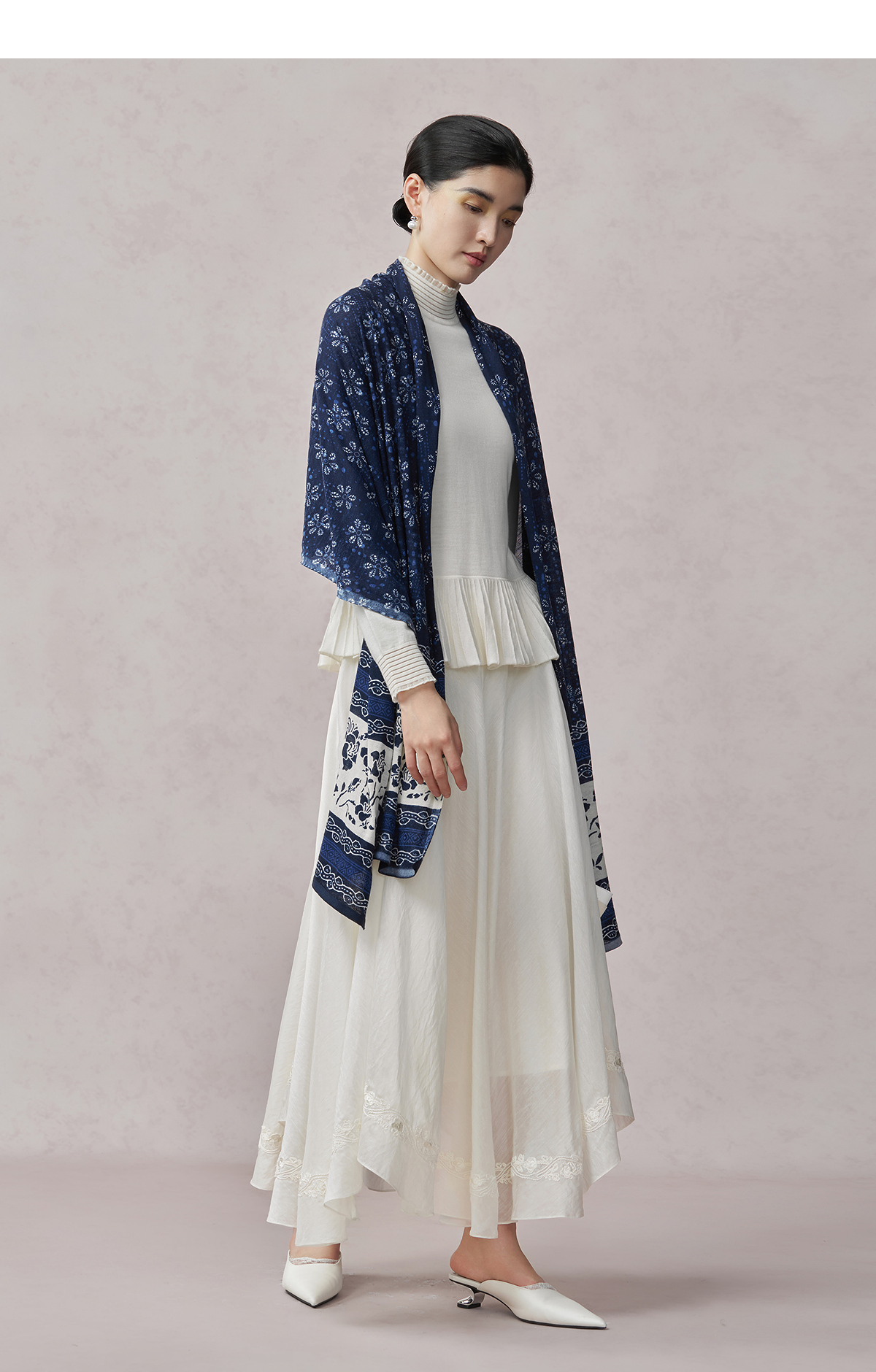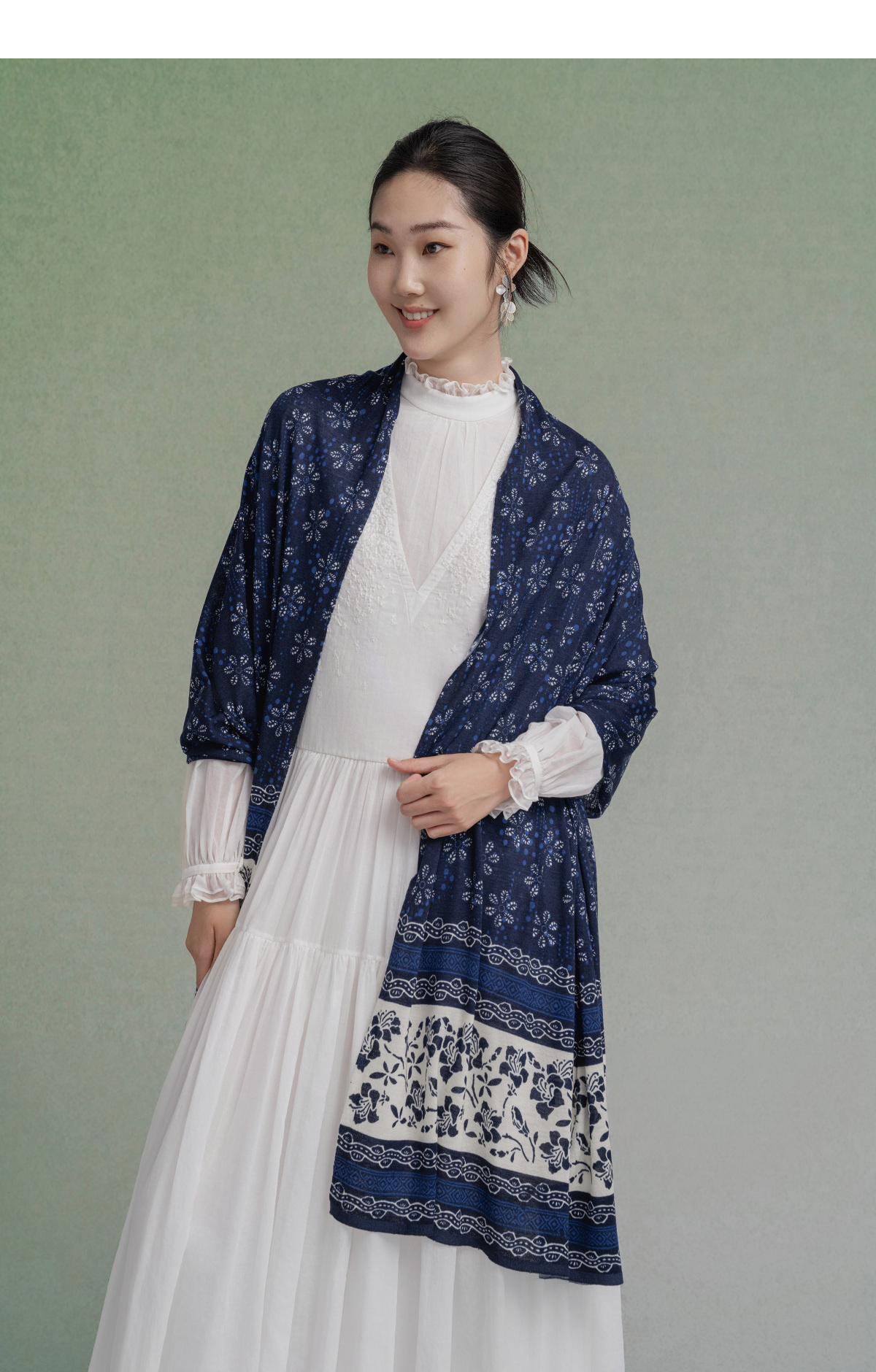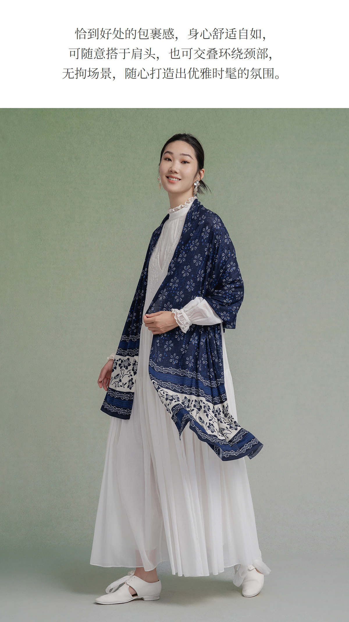 【林栖设计小店】(现货)绵羊毛毛织披肩传统印花百搭气质2025秋季新款围巾披肩女2904264B