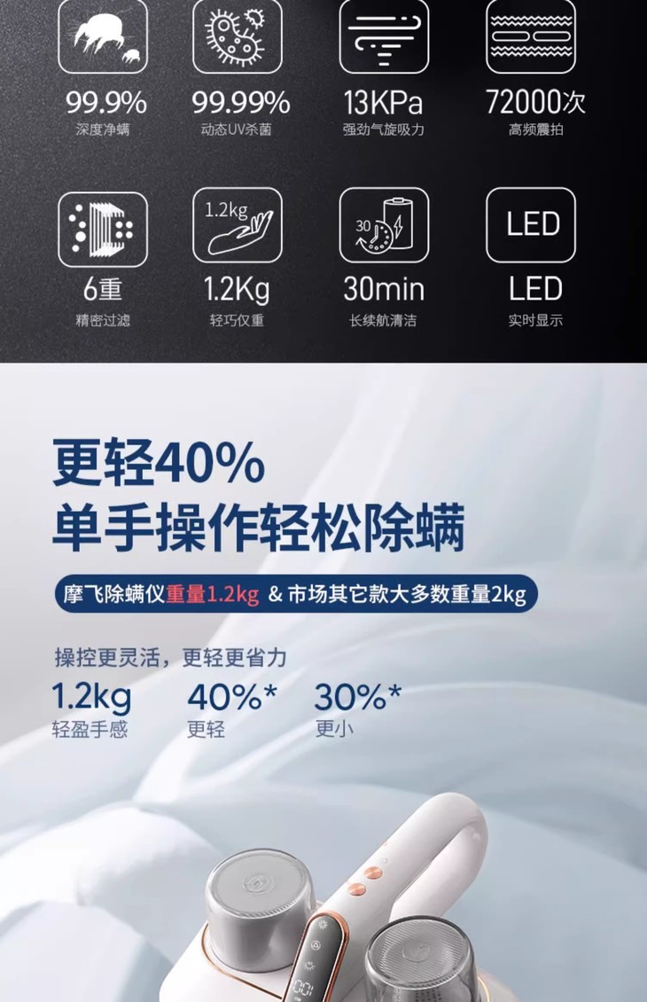 摩飞除螨仪无线家用床上强拍打紫外线杀菌机小型吸尘器除螨虫神器