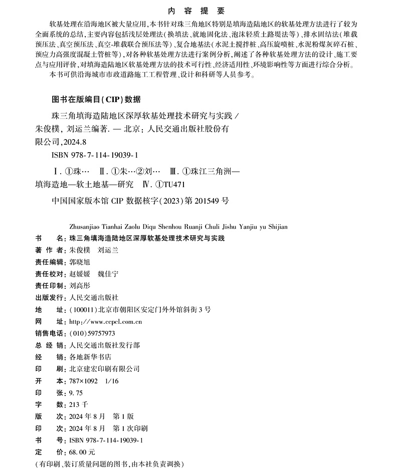 书名:珠三角填海造陆地区深厚软基处理技术研究与实践