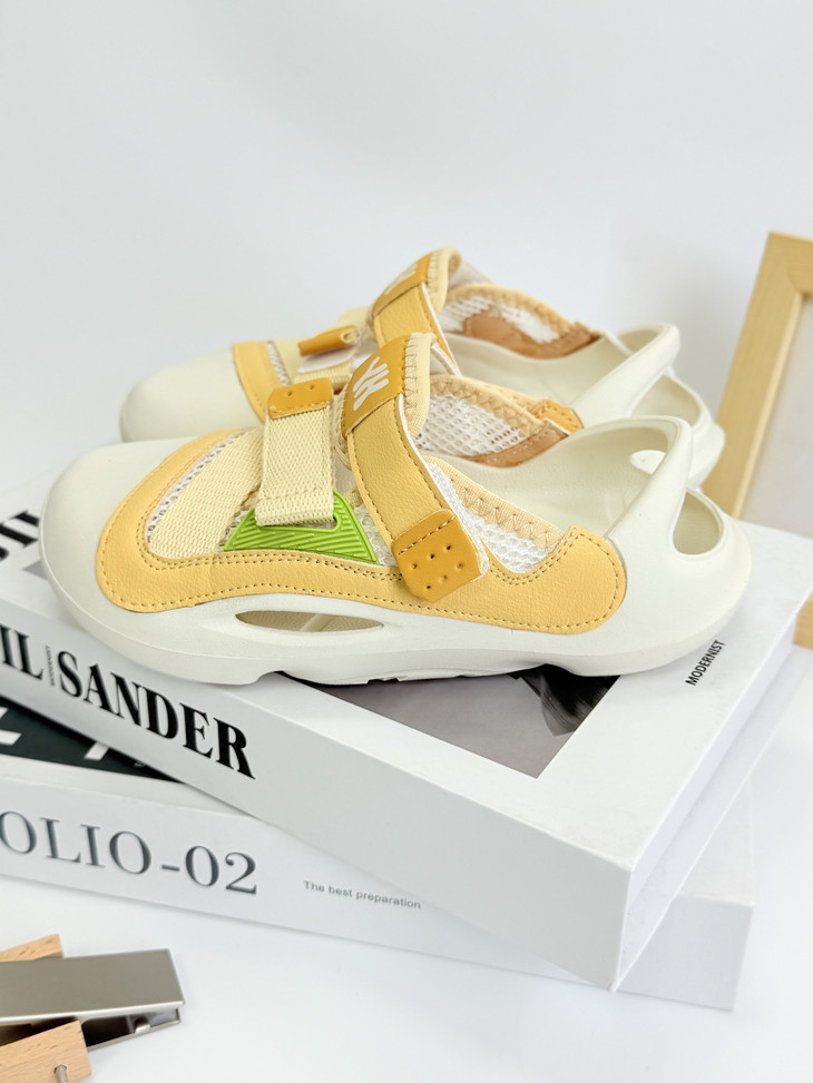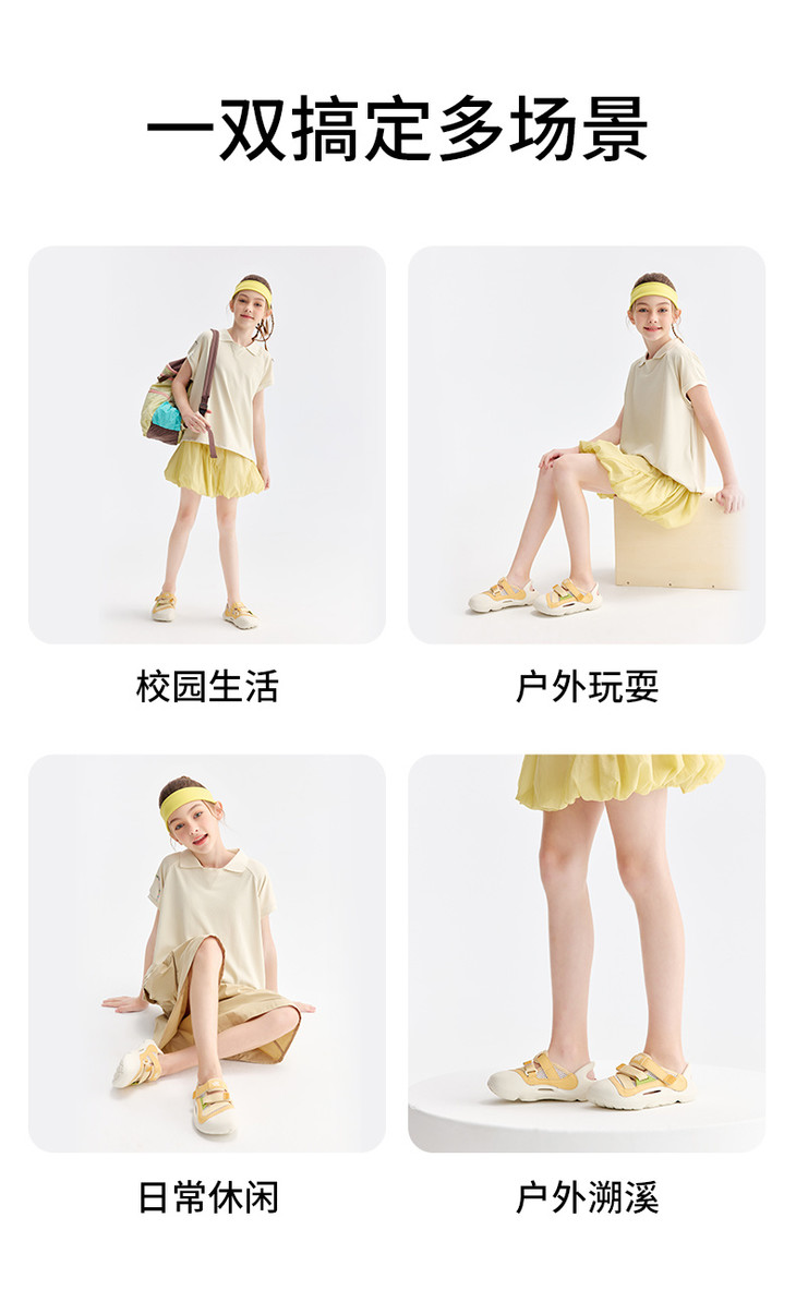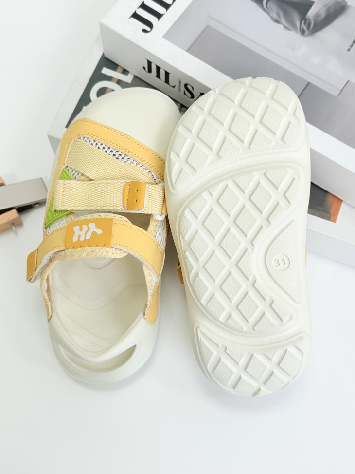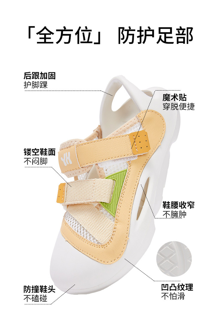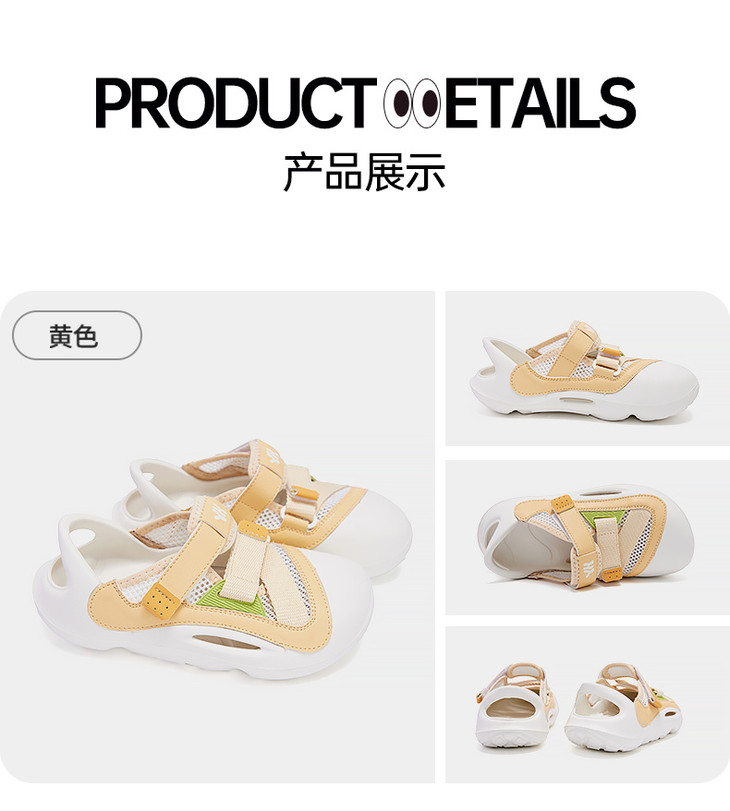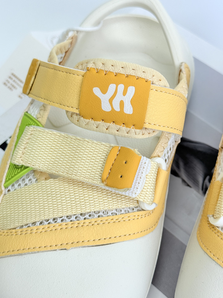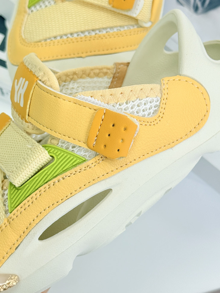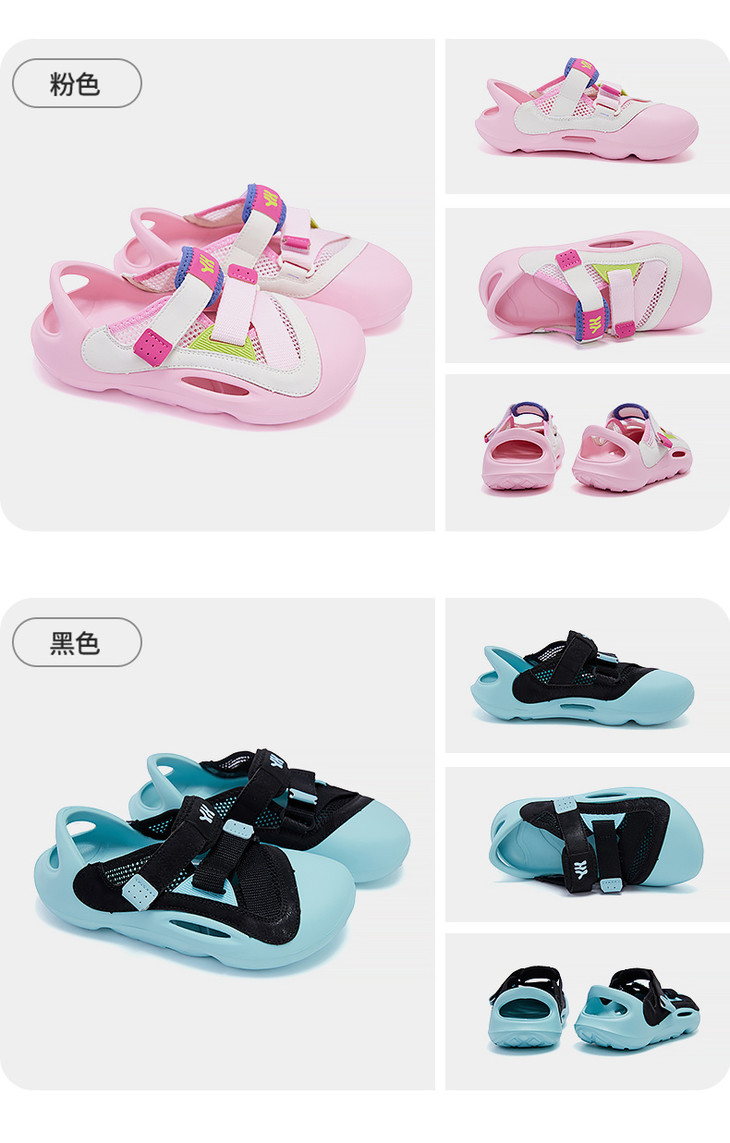 货号:YHBLF2521203 颜色:黑色、粉色、黄色 尺码:31-37 材质:鞋面 网布+超纤;鞋底 橡塑 颜色搭配活泼亮眼,造型超级潮酷有个性,夏天穿着时尚感十足~ 鞋身又软又轻,穿在脚上完全没有负担,宝宝穿着它跑跳超快乐 网布鞋面超级薄超级透气,宝宝穿着不会闷不会捂脚,超清爽~ 后跟加固设计,稳健根骨,降低宝宝崴脚风险 橡胶防滑大底,超级耐磨,宝宝穿着奔跑玩耍也更安全 鞋头微翘,贴合宝宝走路习惯,让宝宝走路更稳健~