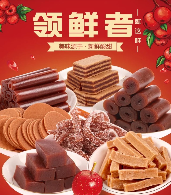 【产品规格】 组合装1014g/1袋(7种口味各1袋)山楂条1斤一袋