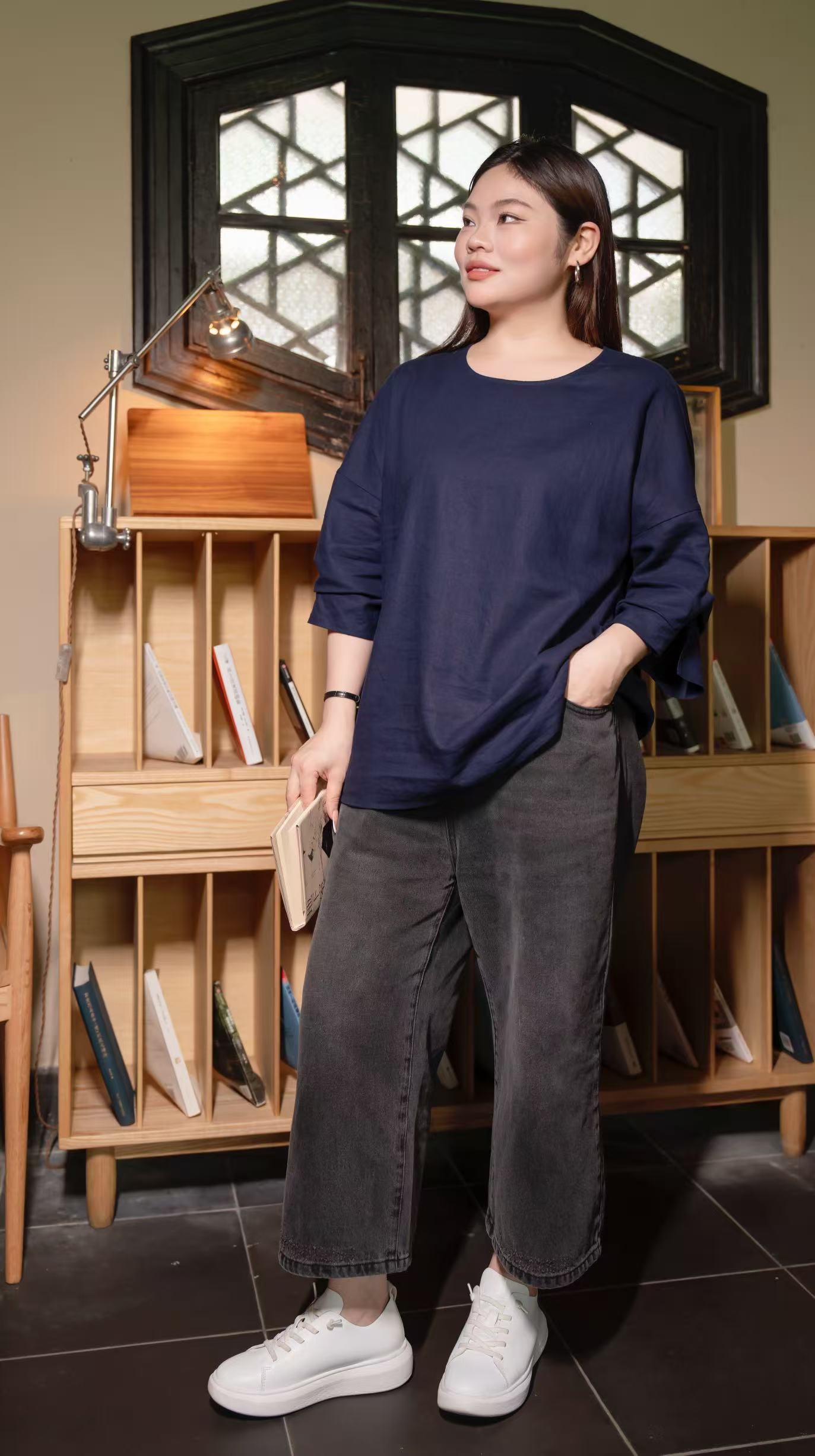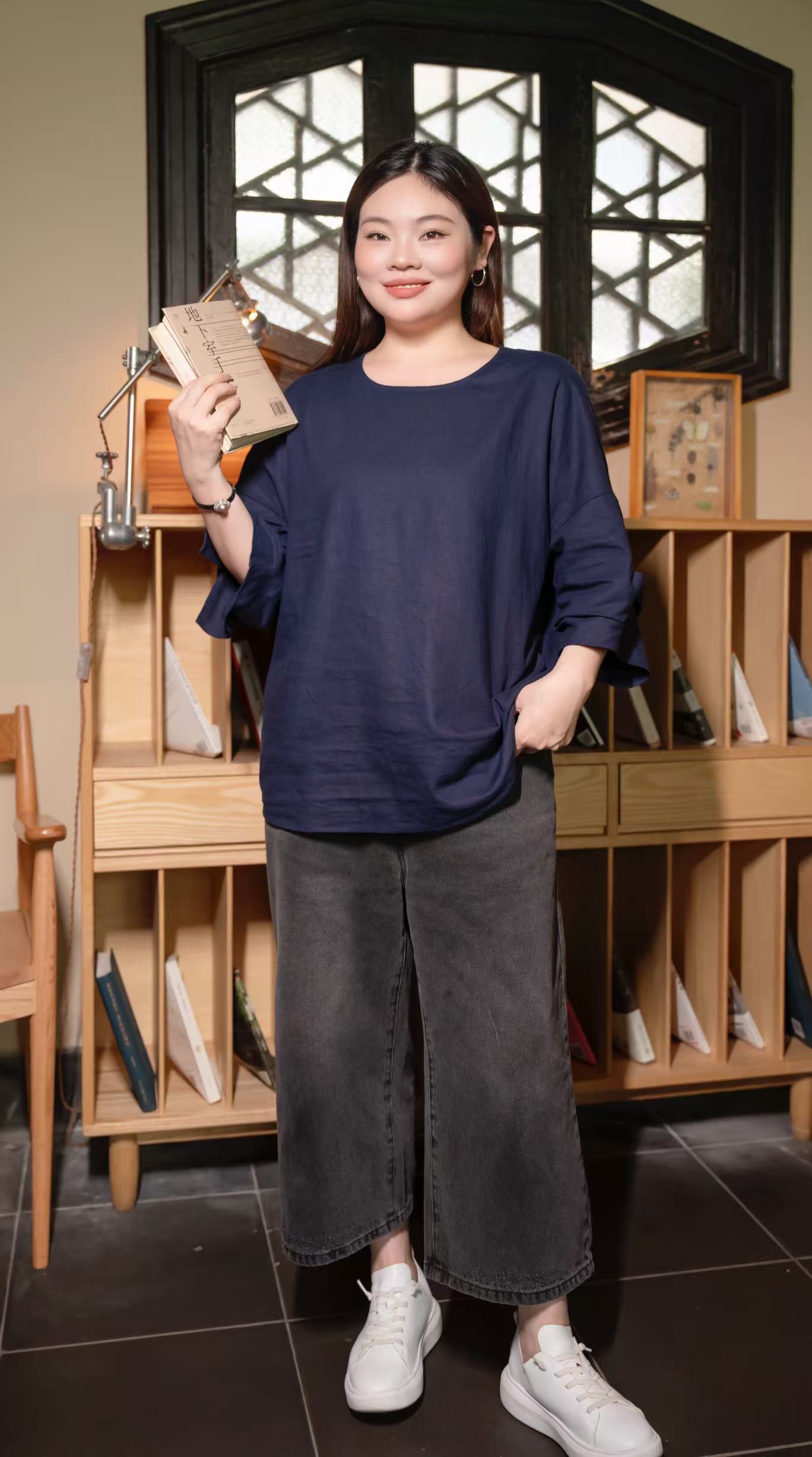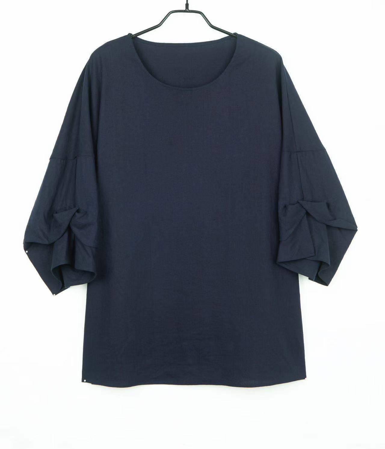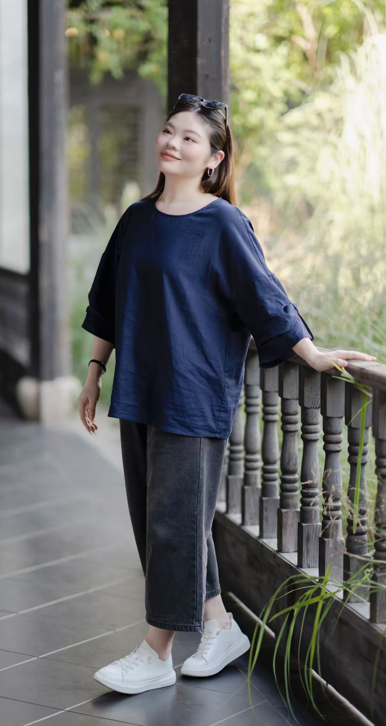 现货现发【棉麻七分袖上衣】百分百亚麻面料,酵素染色工艺,德隆的棉麻面料,自然工艺,天然纯净,超长落肩设计,袖子微喇开叉花瓣袖,遮手臂肉,手臂肉肉多一定要入手