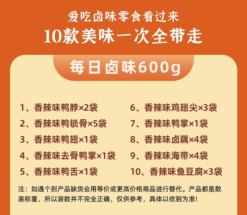 小胡鸭【每日卤味】零食礼盒节日送礼 香辣卤味荤素散装称重 600g