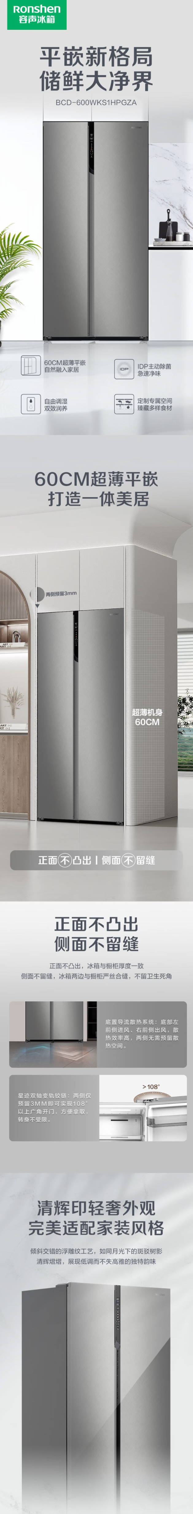 容声(203024)BCD-600WKS1HPGZA家用大容量双开门对开门一级变频风冷无霜电冰箱 【月华锦】
