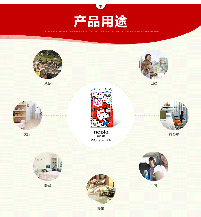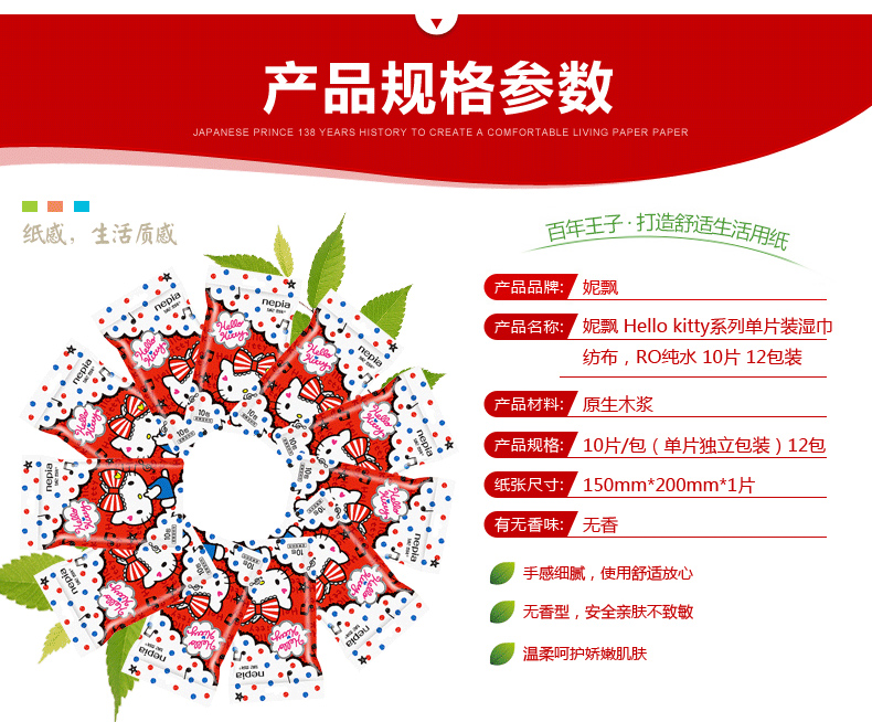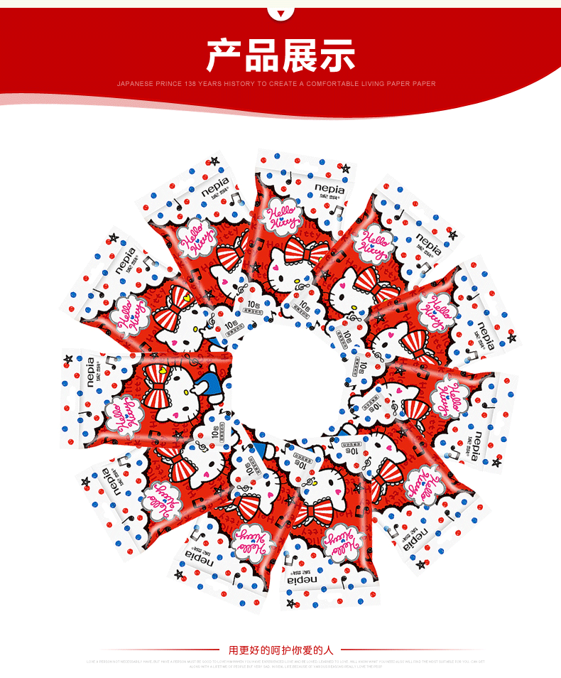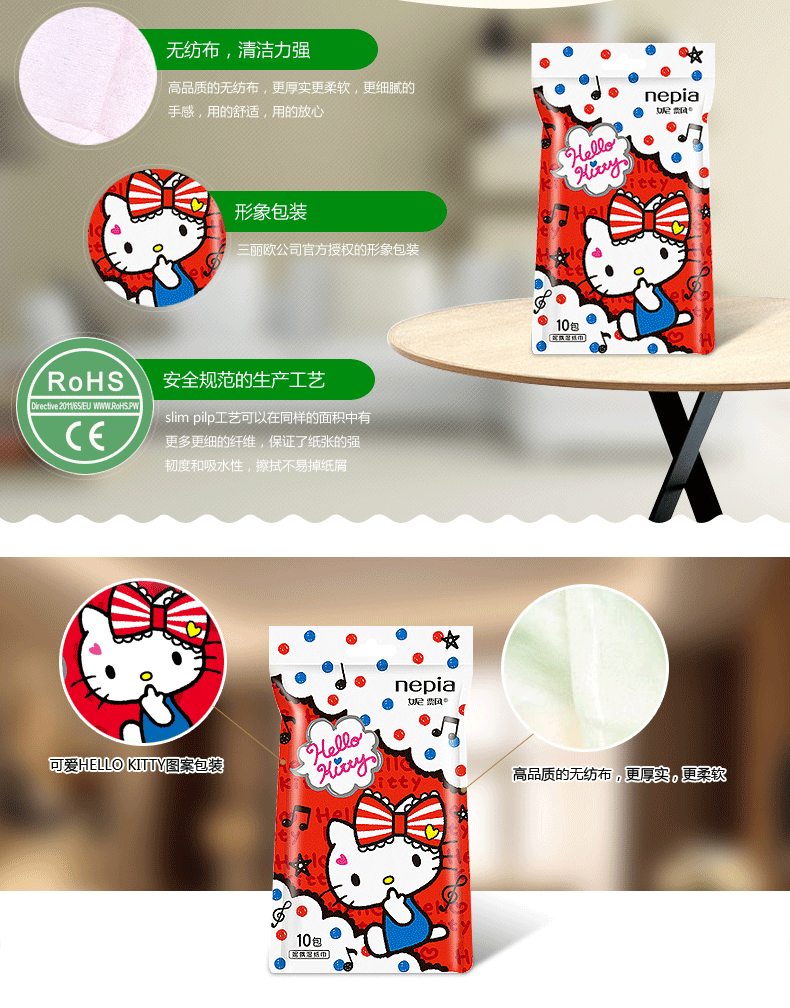 【长江外运】妮飘湿纸巾hello kitty袋装湿巾 独立片装湿巾10片*3