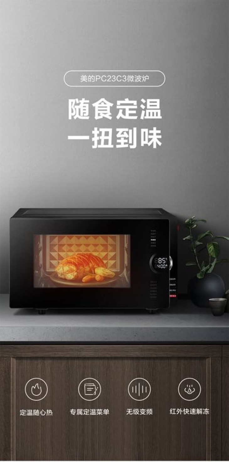 美的(Midea)(509633)微波炉 PC23C3 智能解冻 家用无极变频定温恒温烧烤光波炉 快速烹饪 23L容量 烧烤功能一级能效