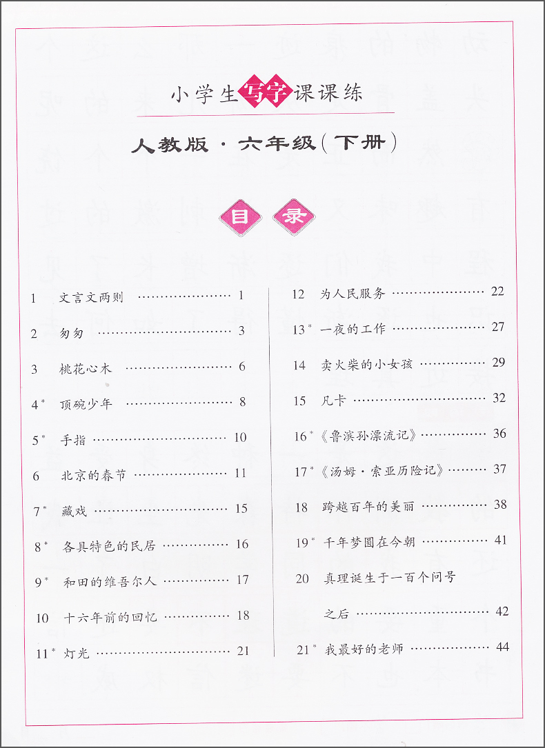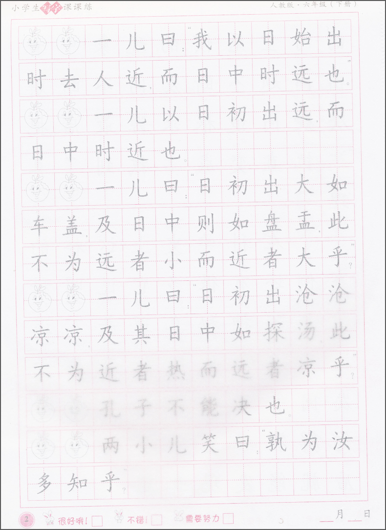 2020部编人教版语文课本同步练字帖六年级下册练字本写字课课练小学生RJ版写字课课练小学6年级下册下学期笔画笔顺铅笔楷书正楷字