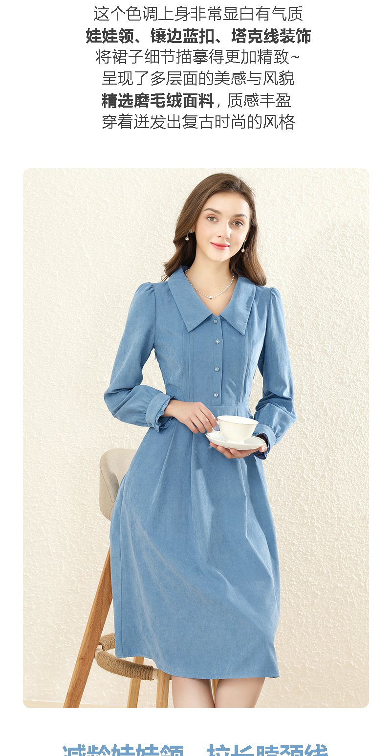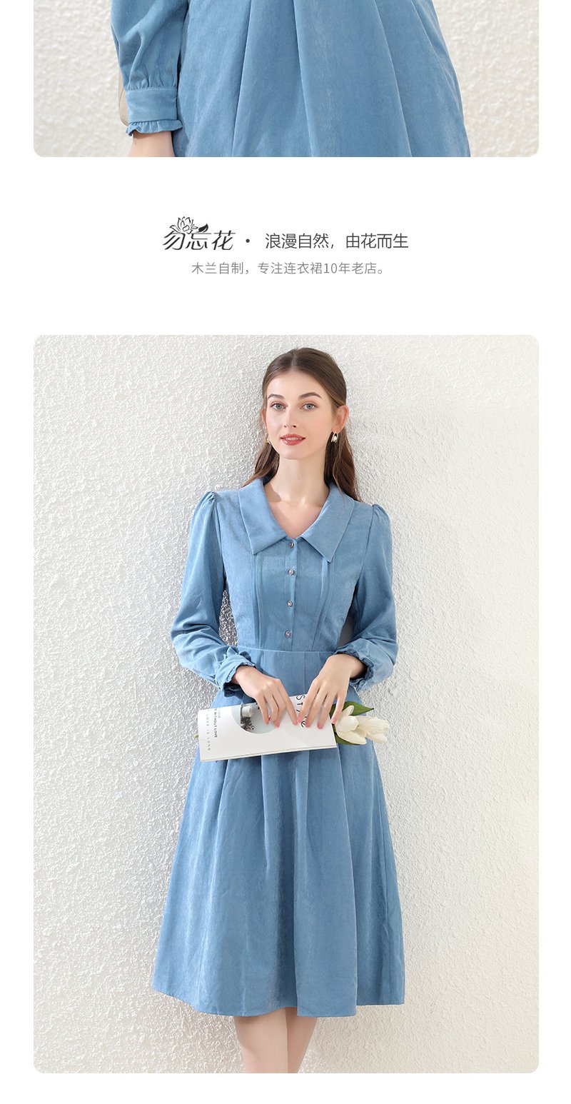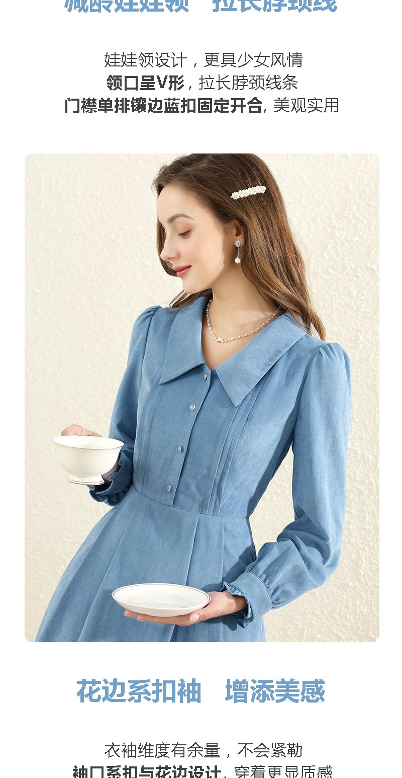 勿忘花蓝色法式气质长袖连衣裙女2024春季新款今年流行的漂亮裙子