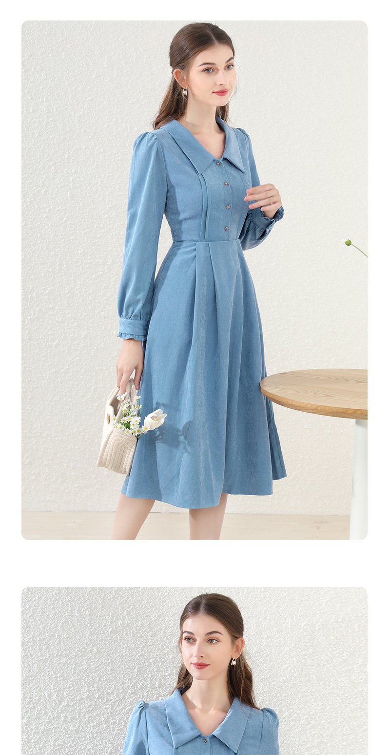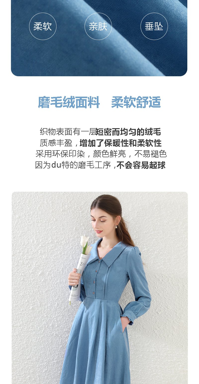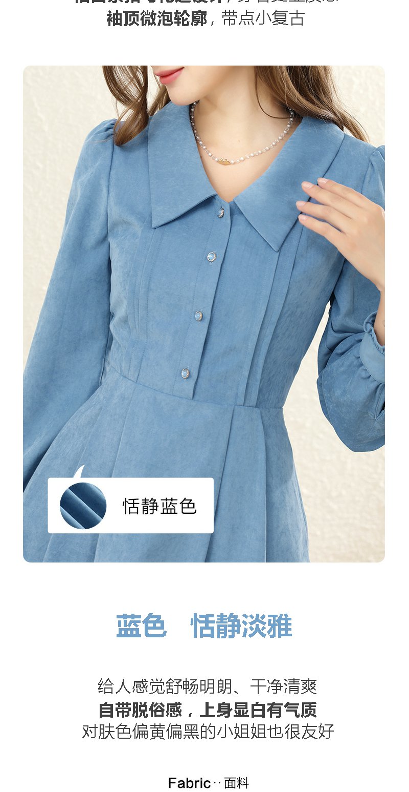勿忘花蓝色法式气质长袖连衣裙女2024春季新款今年流行的漂亮裙子