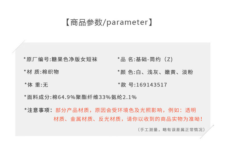 基础-简约糖果色净版女短袜袜子-纪念日百货门店同款169143517