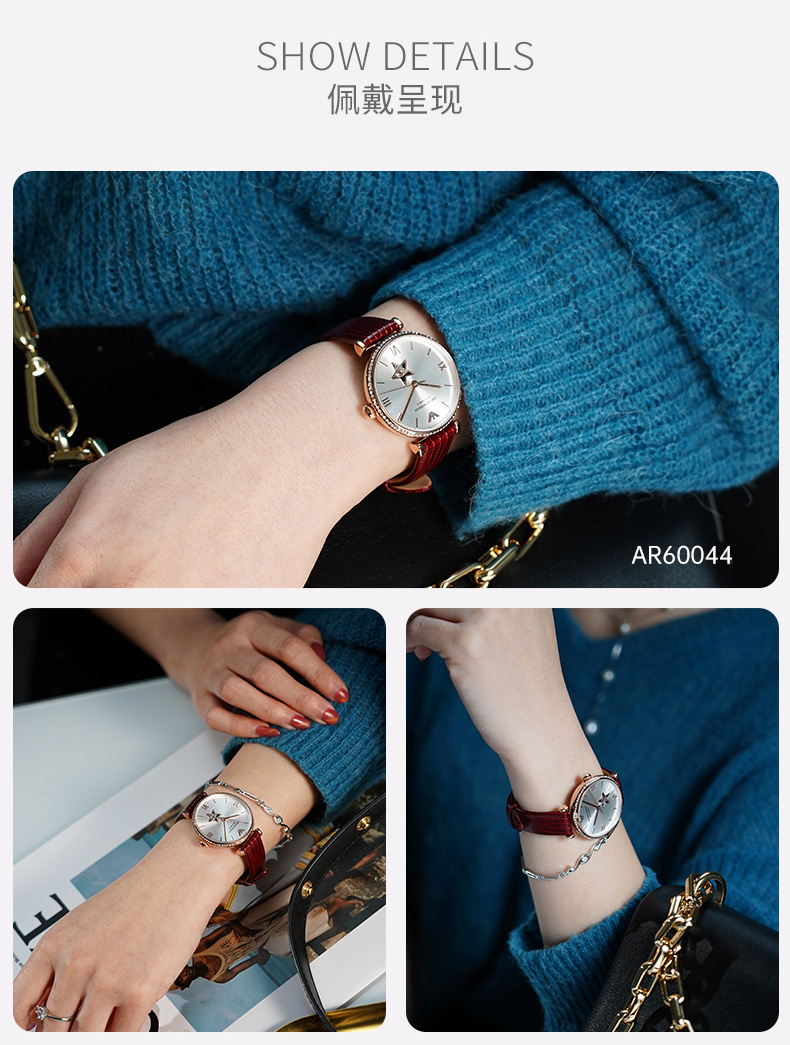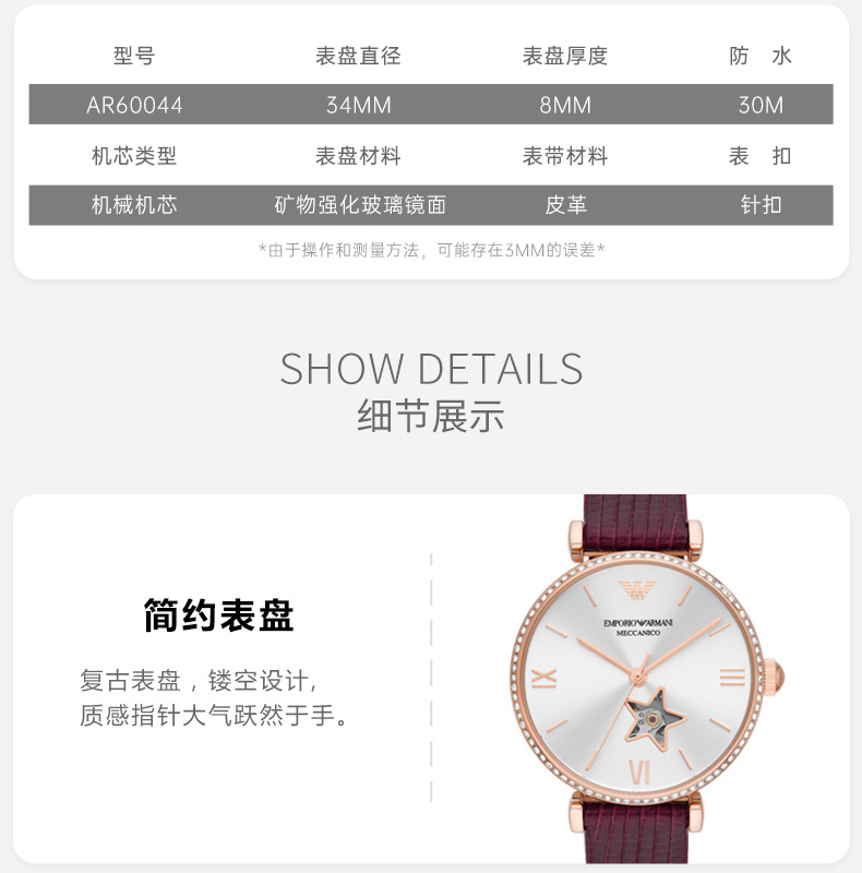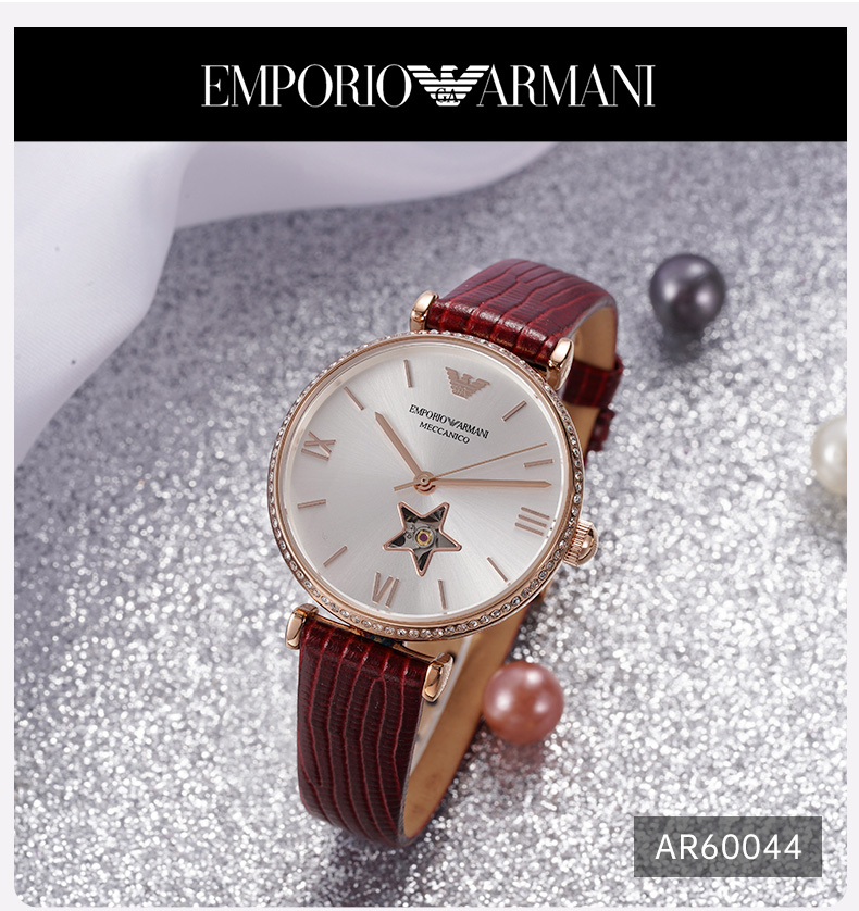 新款Armani阿玛尼满天星女士手表 时尚气质轻奢皮带镂空机械表AR60044