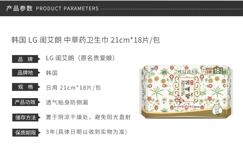 闺艾朗 贵爱娘草药日用卫生巾 21CM 18片JPY带授权招加盟代理