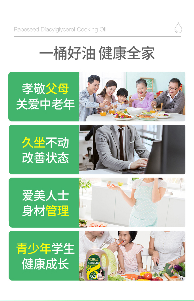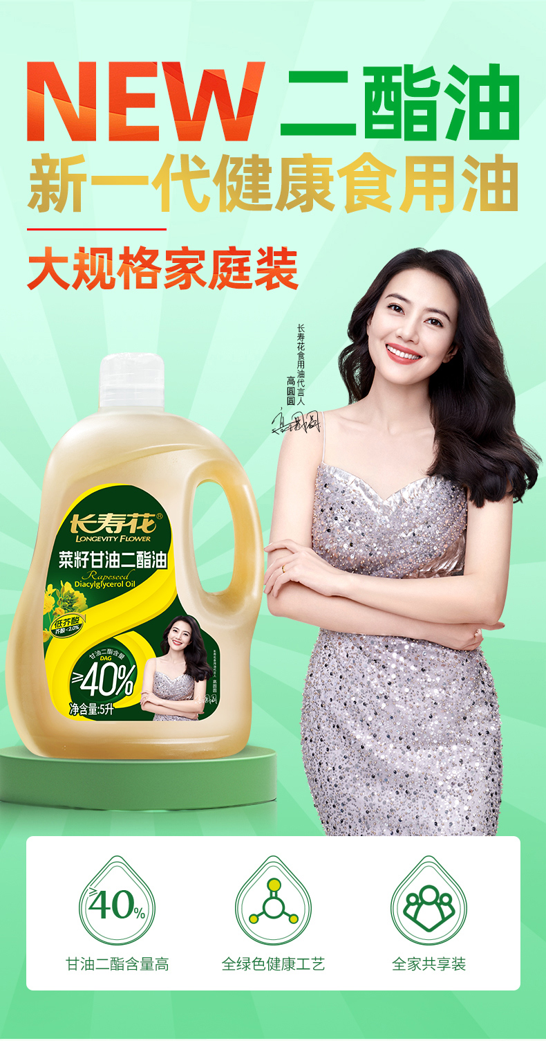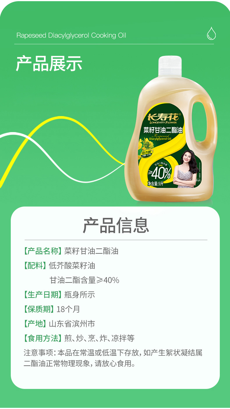 长寿花轻酯甘油二酯食用油40%DAG含量 5L 低芥酸菜籽二酯油家庭装 赠送5斤长粒香大米