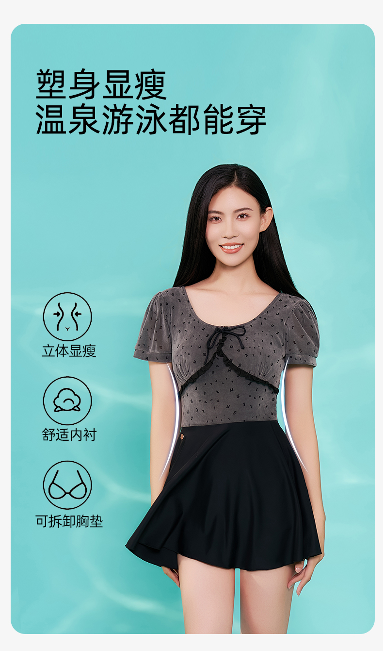 【商场同款】熳洁儿 夏季泳衣法式甜美大U领连体裙泳衣25206312