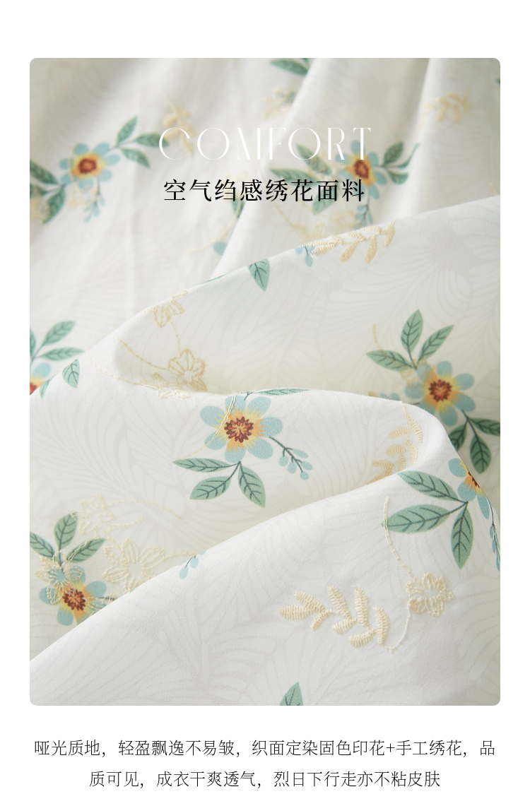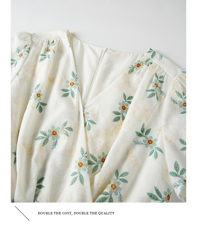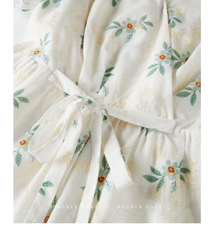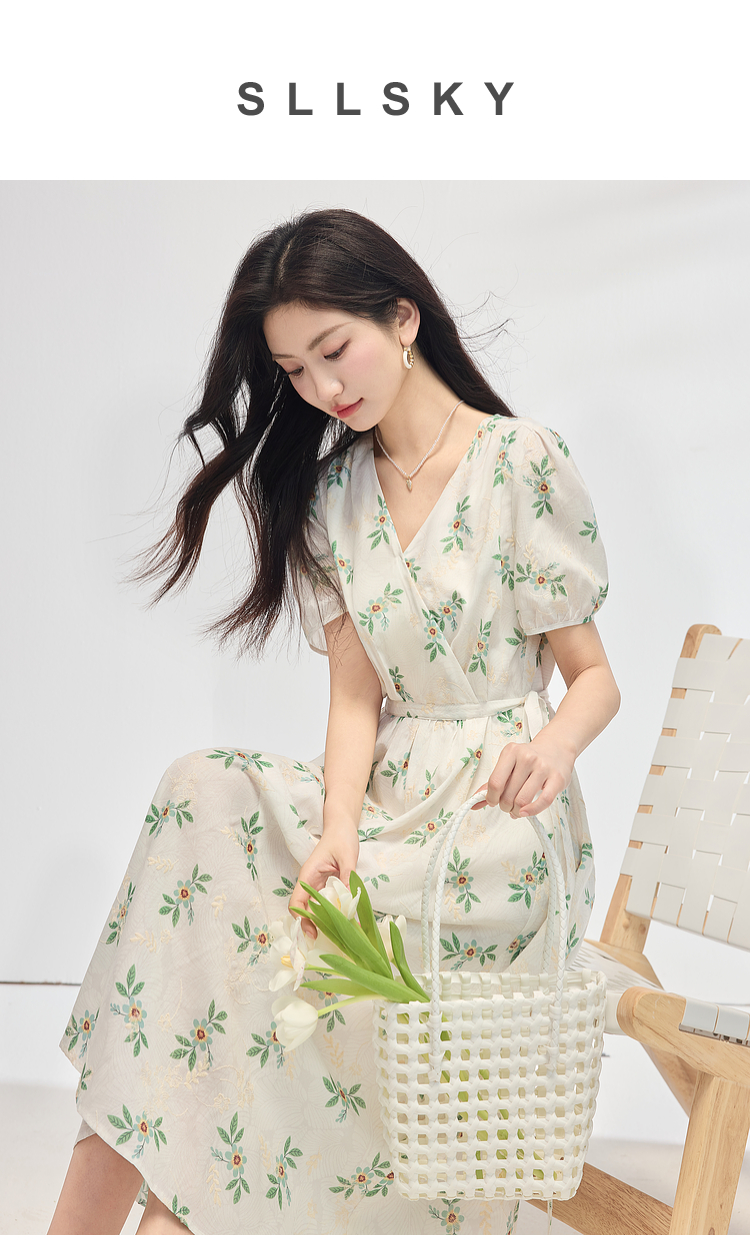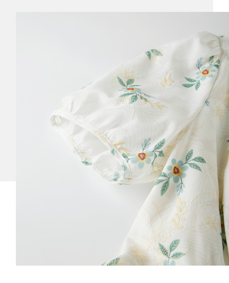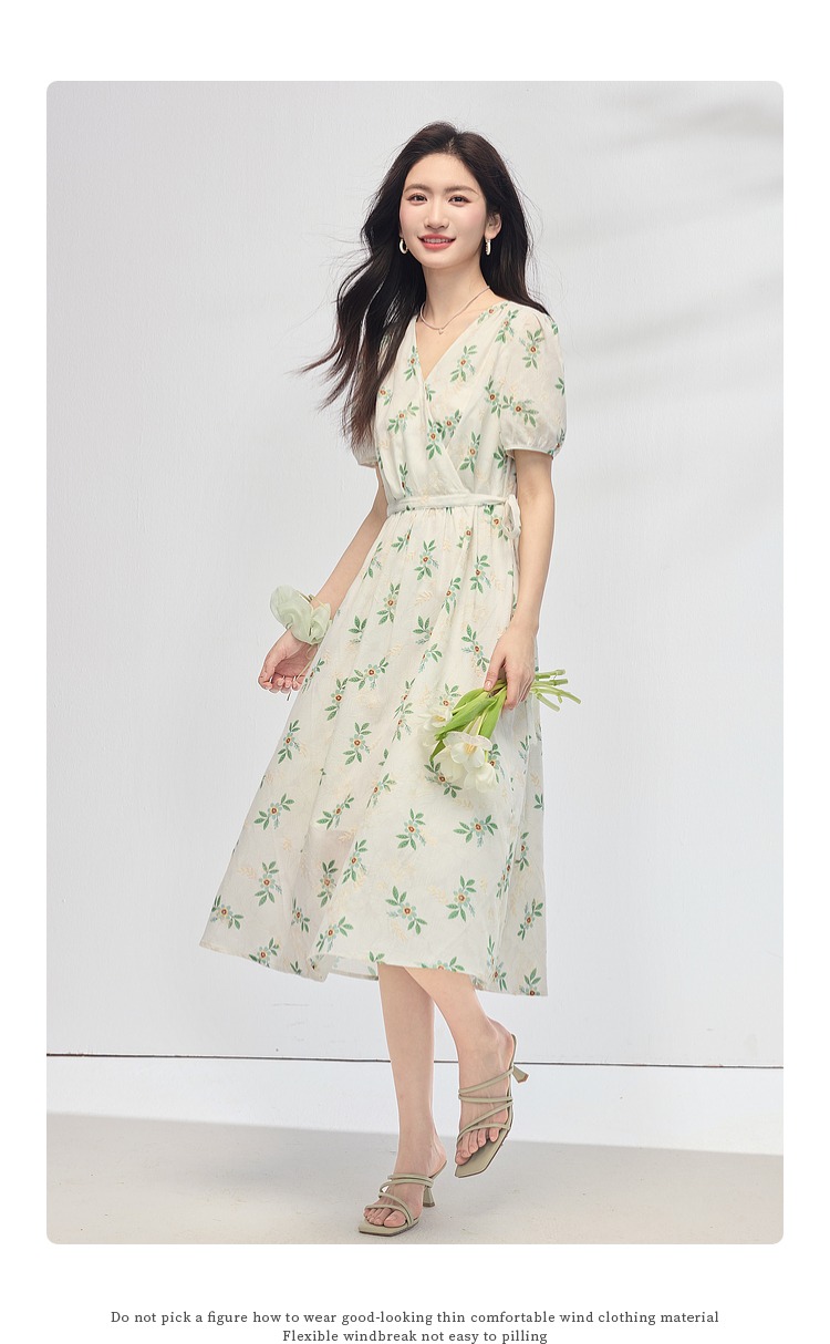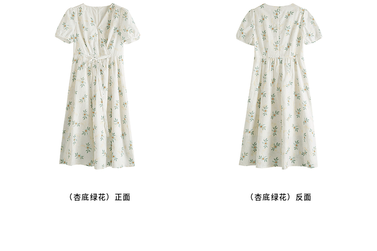 【专属特价】熙世界【植物系碎花】收腰显瘦V领连衣裙女夏季温柔风泡泡袖裙子