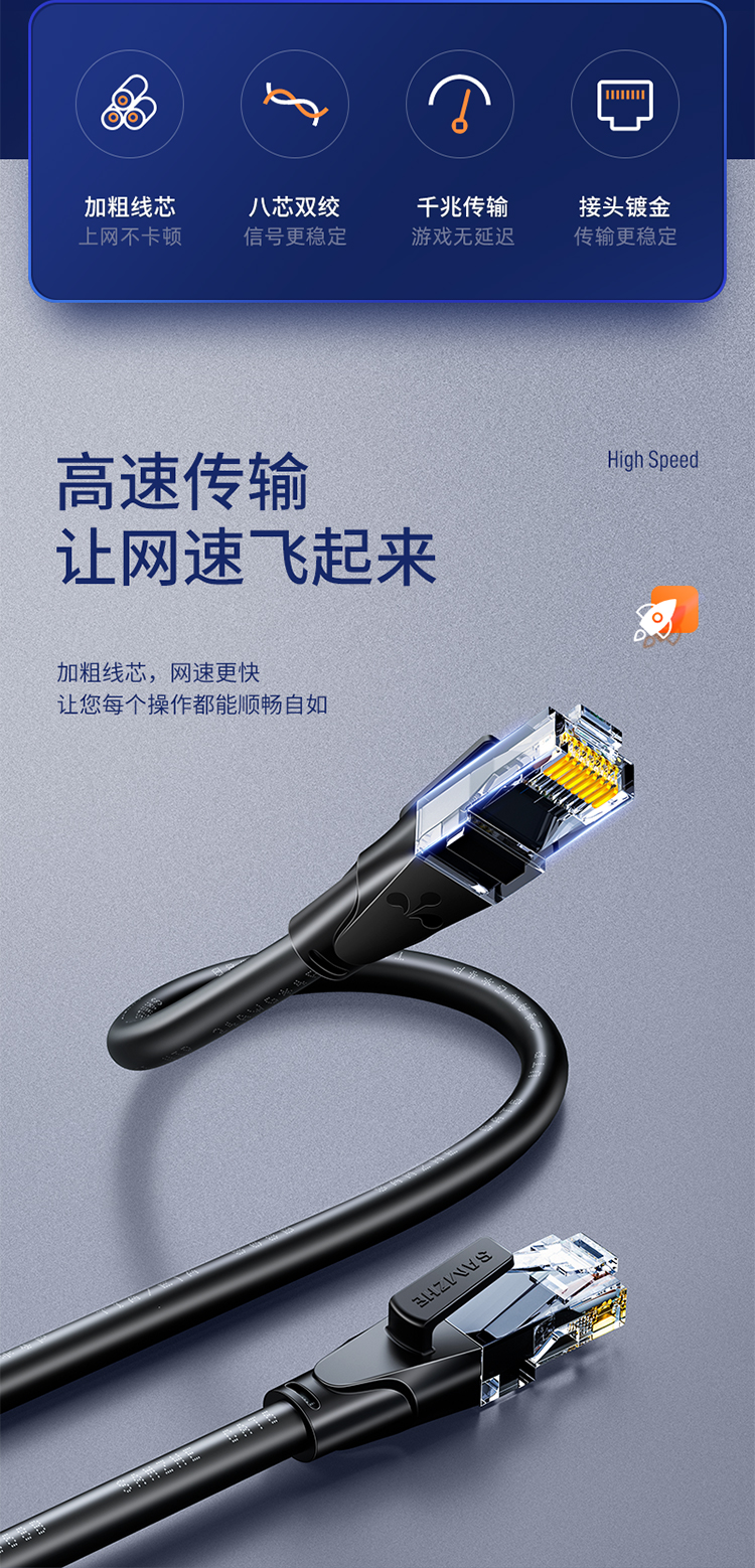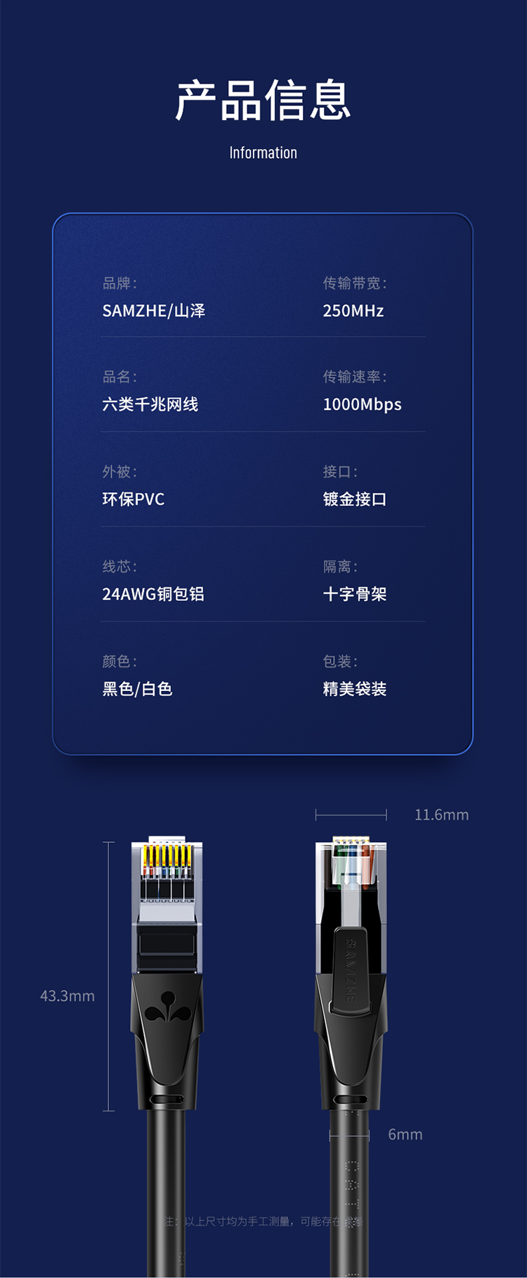 山泽(SAMZHE)六类网线 CAT6类千兆极速8芯双绞 工程家用电脑宽带监控电脑网络跳线成品网线 黑色1.5米 WD6015
