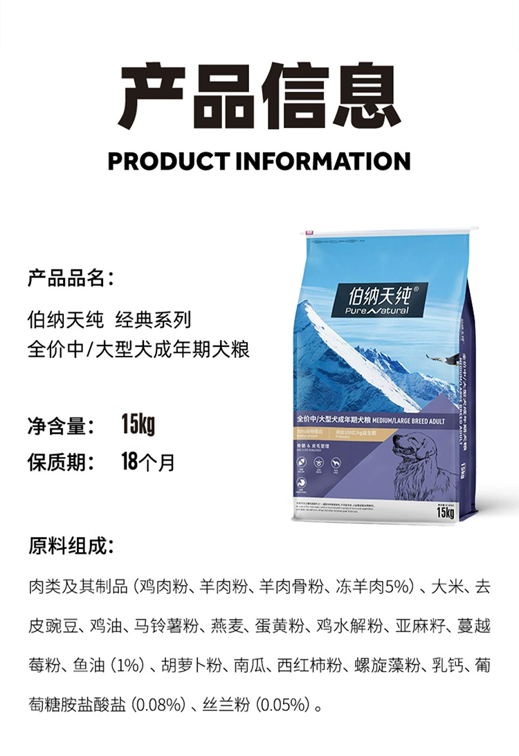 伯纳天纯中大型犬成犬狗粮专用15kg金毛萨摩耶阿拉斯加狗粮