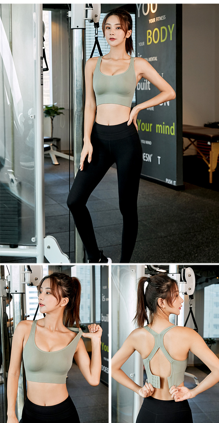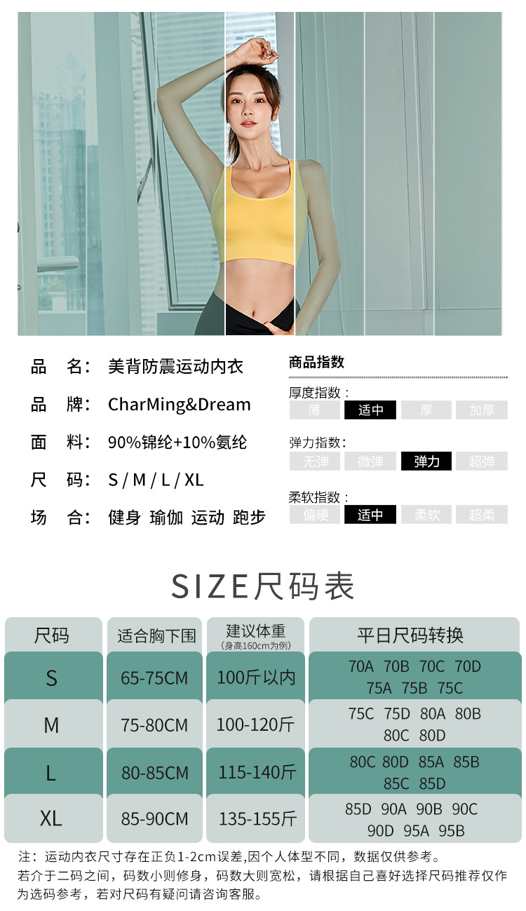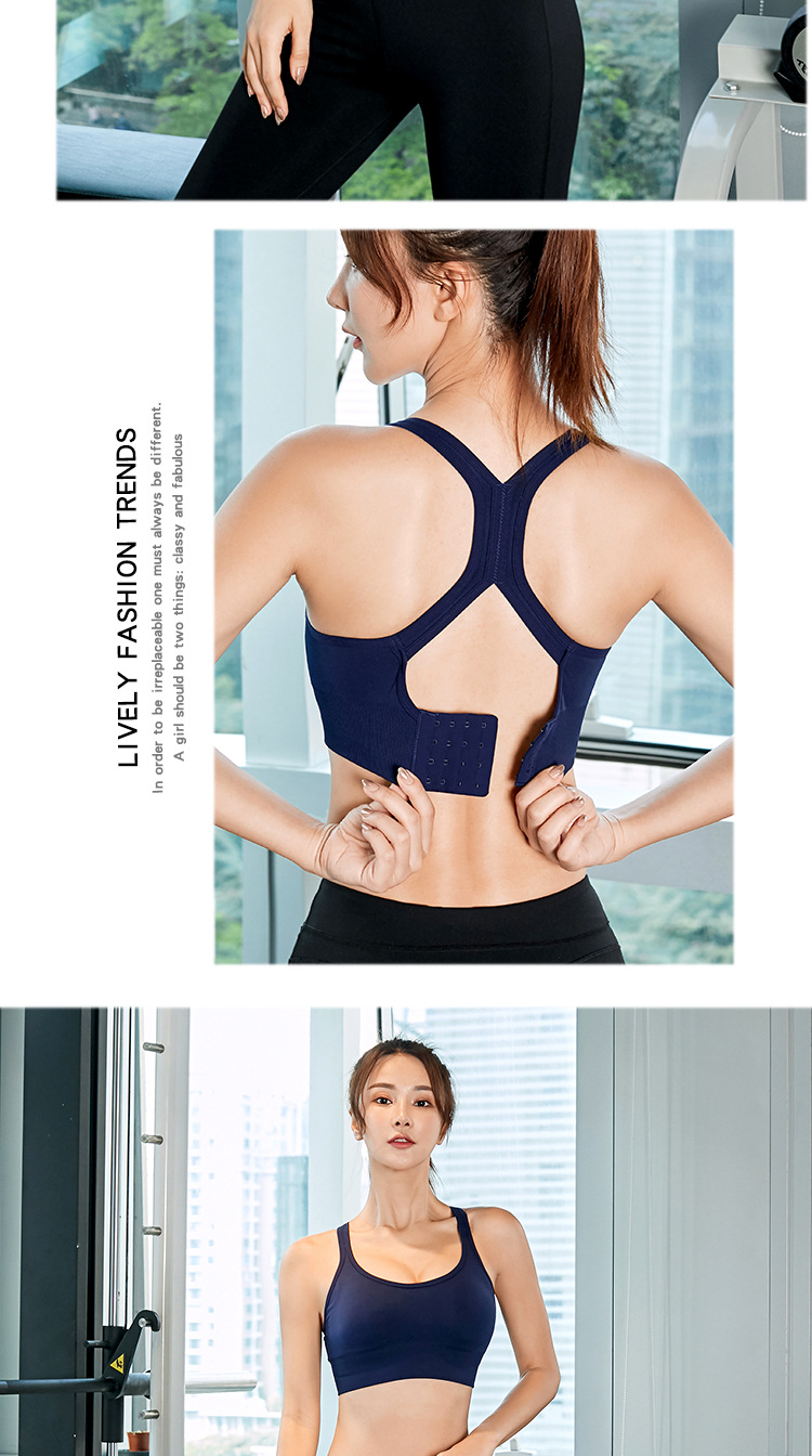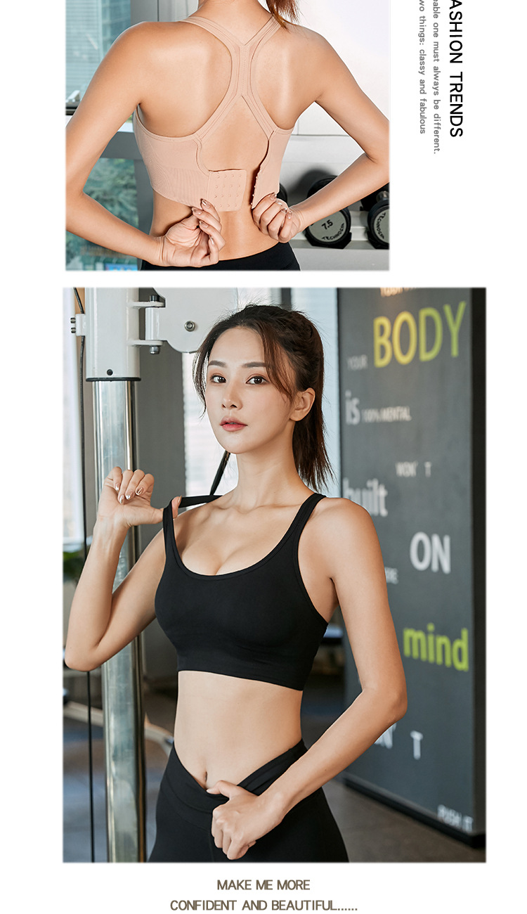【特色】本款设计后4排扣可调节增强内家的固定性,背心式扇形镂空防震运动内衣,彩用高弹面料,吸湿排汗透气,健身运动内衣