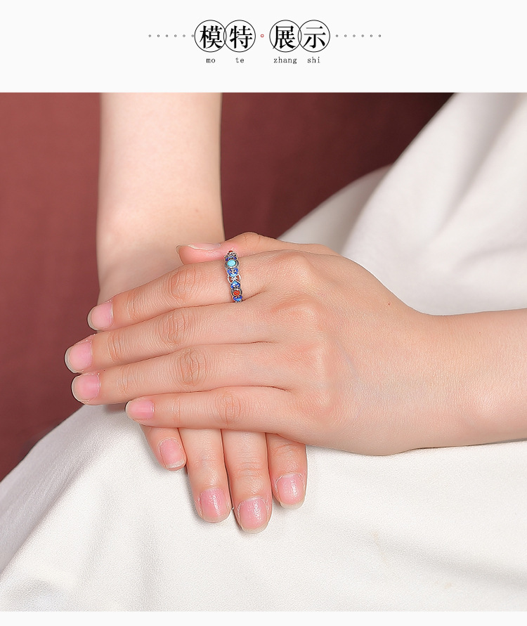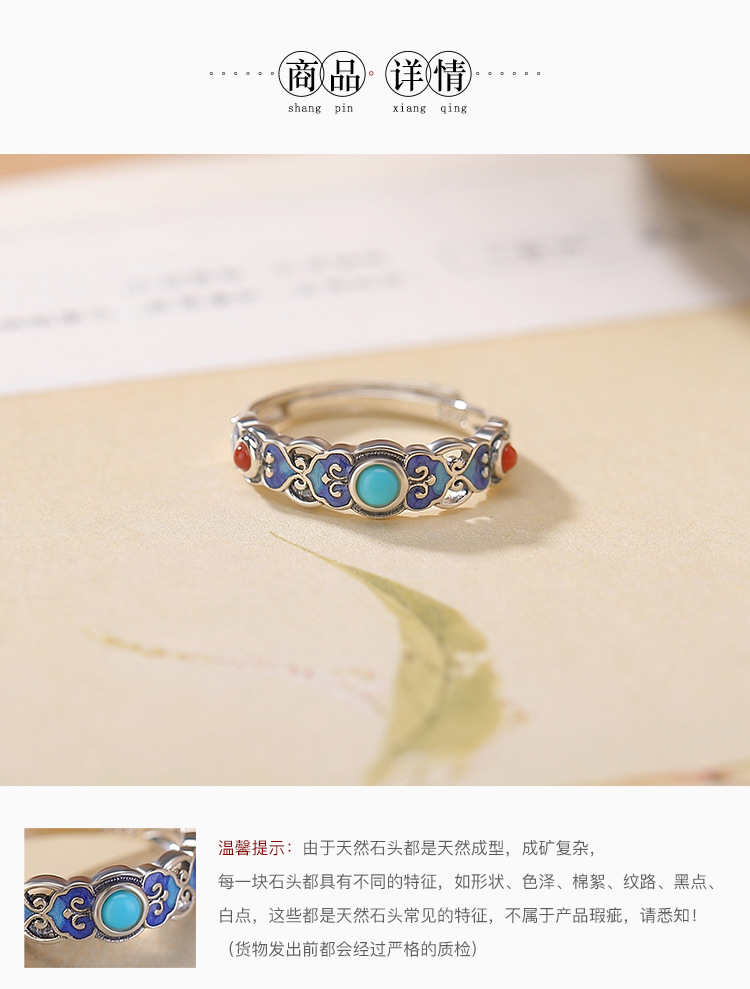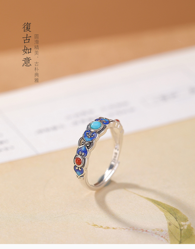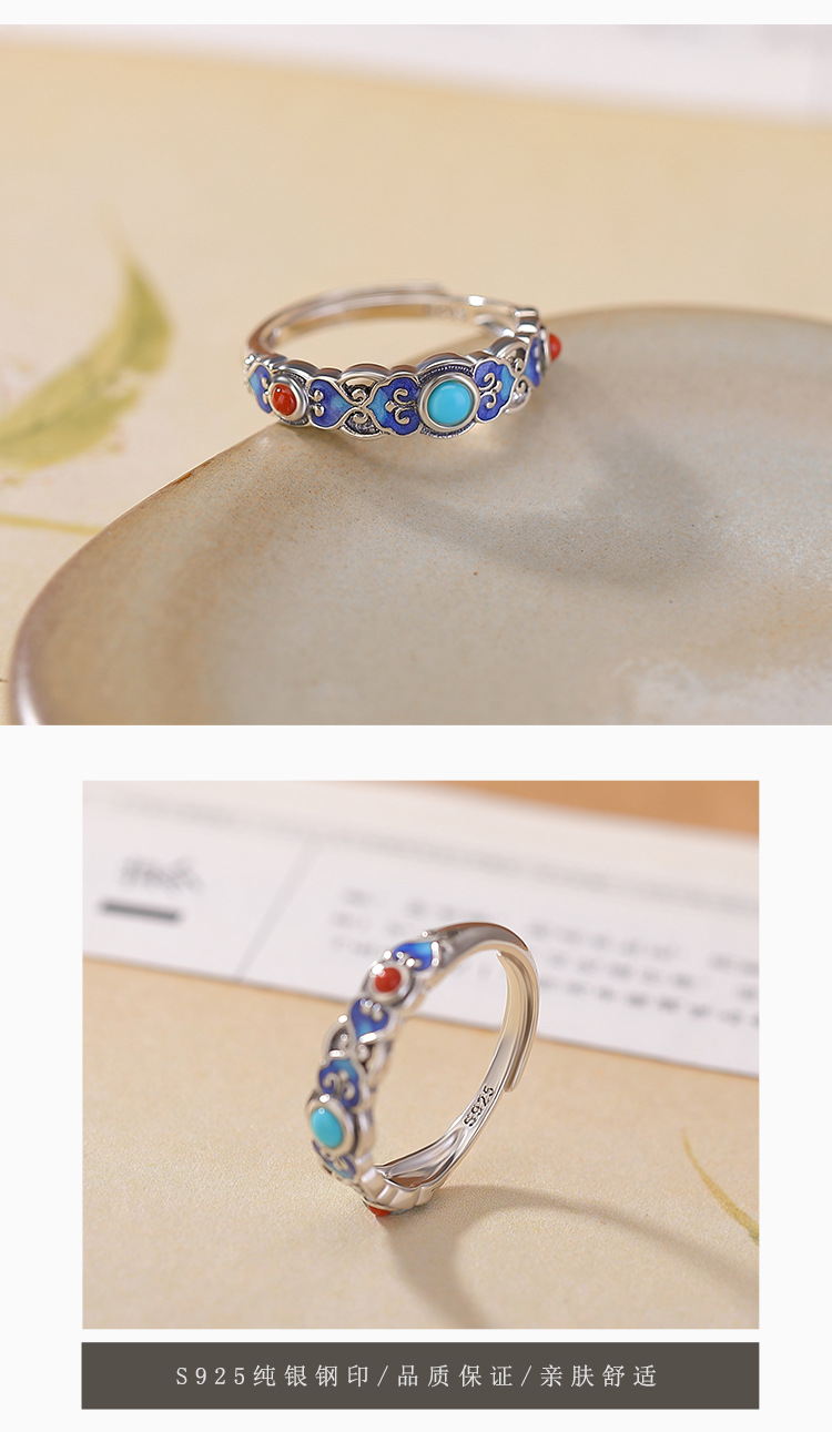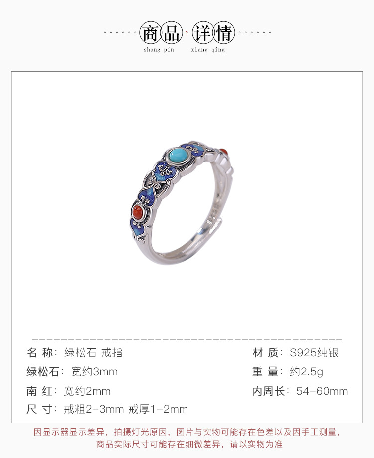 【吉祥如意】S925纯银绿松石南红复古珐琅圆珠戒指【CW-JZ07537】