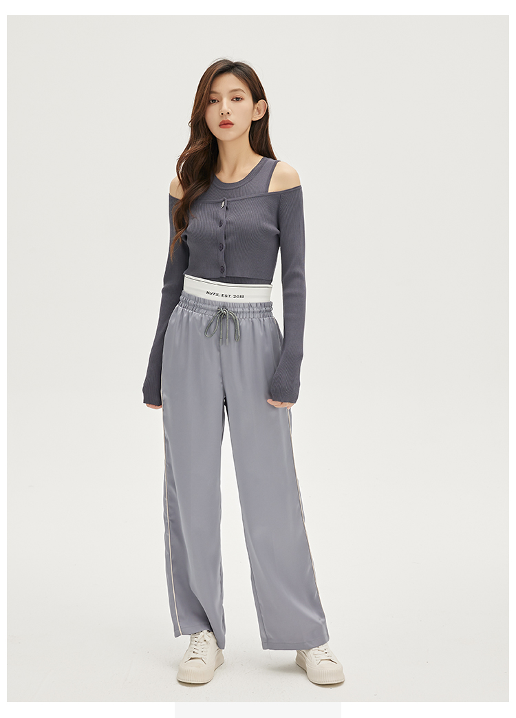 oldcolour纯色休闲裤春季新款高腰松紧阔腿运动长裤女P12073248