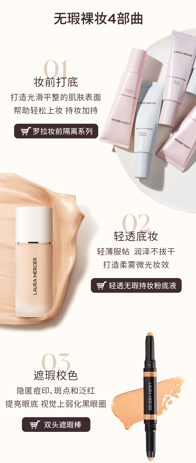 品牌直发 LAURA MERCIER 罗拉玛希 轻透无瑕持妆粉底液 0W1 30mL/1N2 30mL