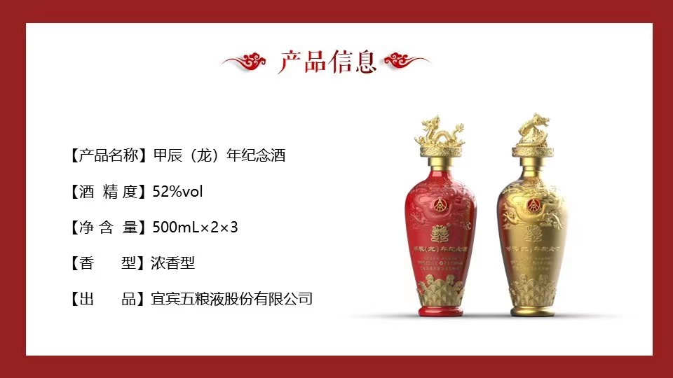 五粮液出品 甲辰龙年纪念酒 白酒 双支礼盒装 500ml*2