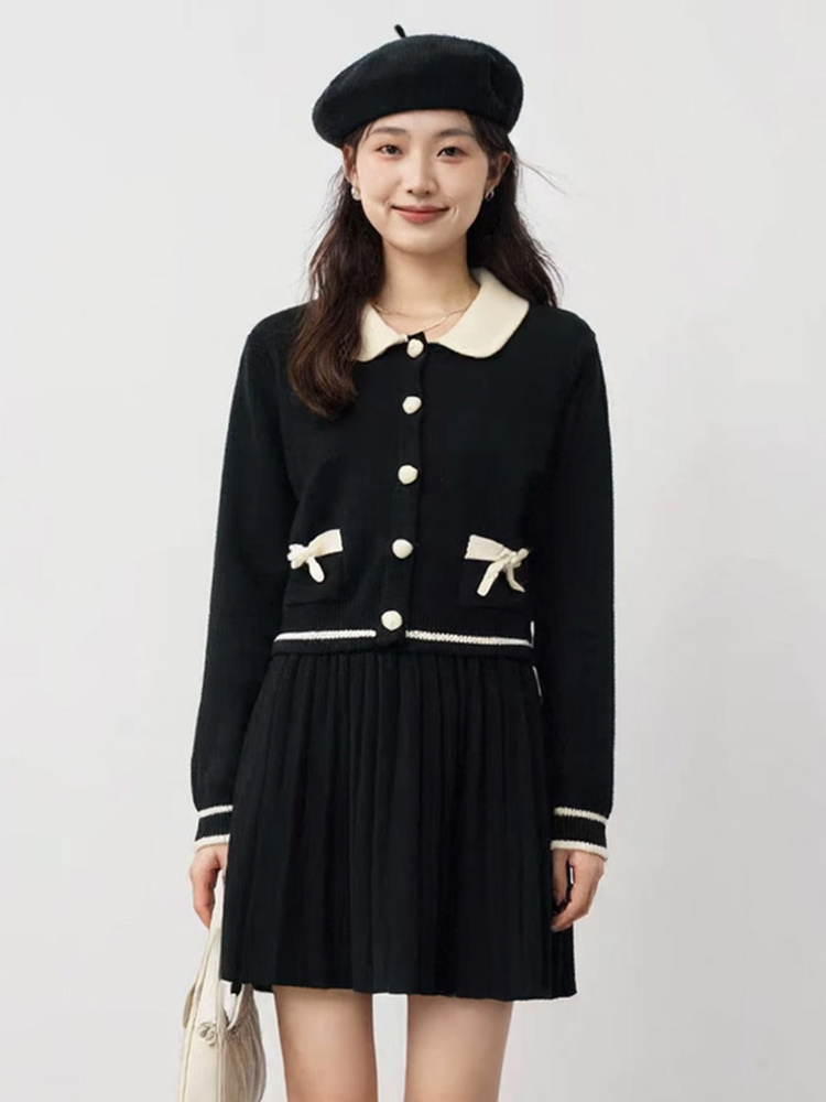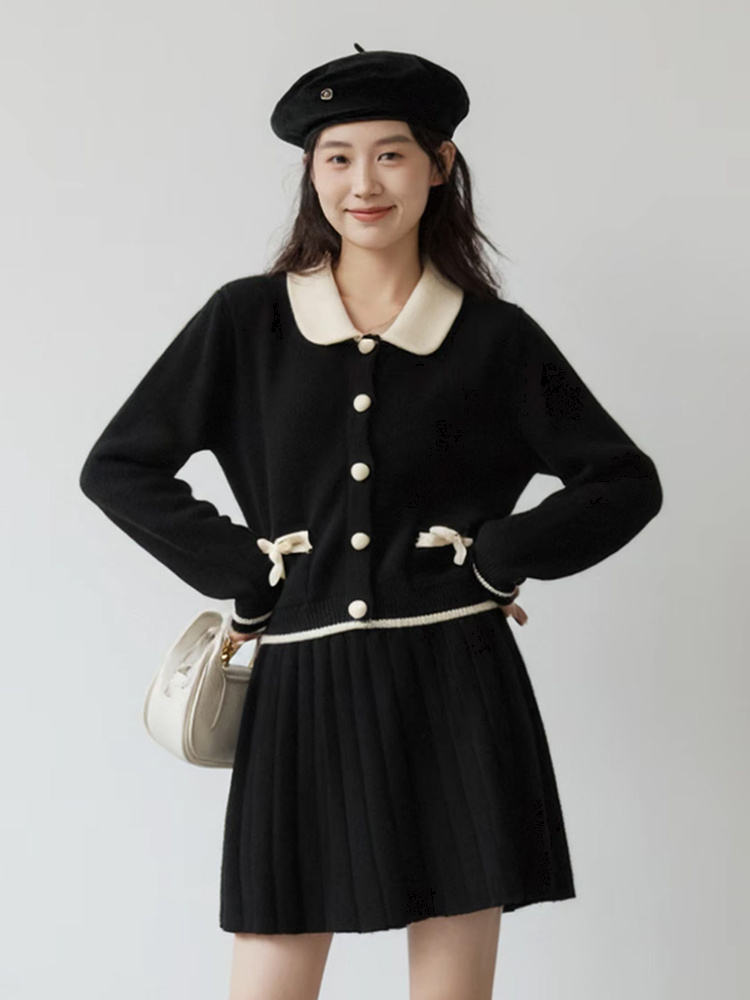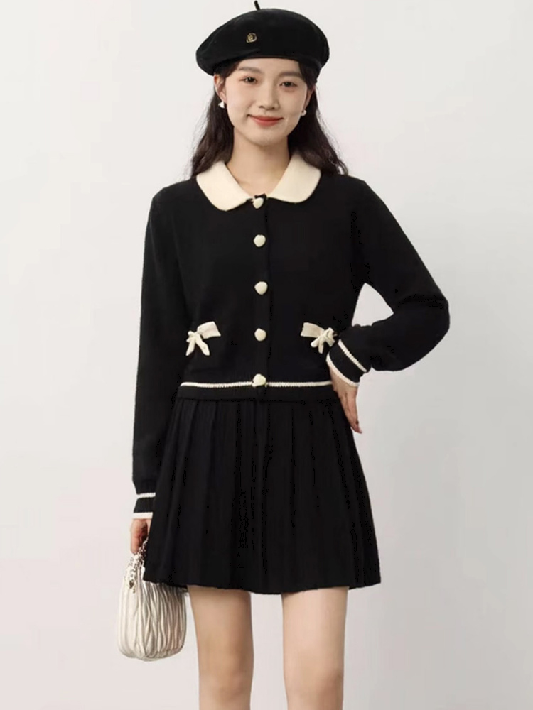奢姿大码女装2025冬季时尚撞色娃娃领两件套胖妹妹气质减龄套装9854969970